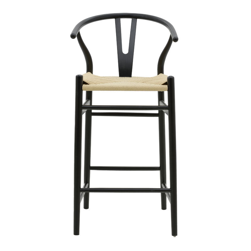 Wishbone бар стол бук черна седалка естествено въже 53x54x107cm