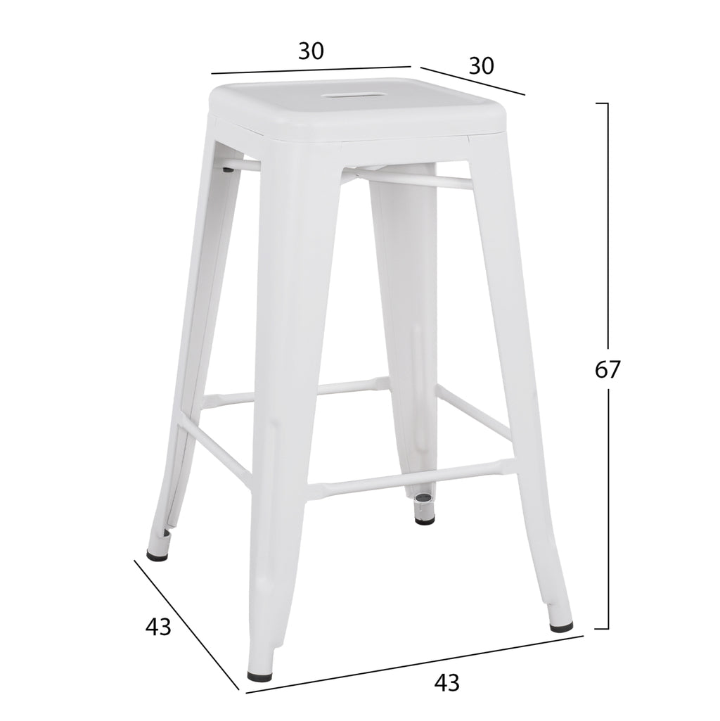 Изберете модерни табуретки, които придават на вашето пространство различен щрих. Поставете ги в кухнята си, пред плот, остров, рафт и създайте малък кът за закуска, малки ястия и дори кафе с вашата компания. Средновисоката табуретка MELITA е изработена от метал в бял матов нюанс, решена в индустриален стил. Може да покрие и нуждите на вашето професионално пространство. Размери: 43х43х67 см. Размери на седалката: 30х30 см.