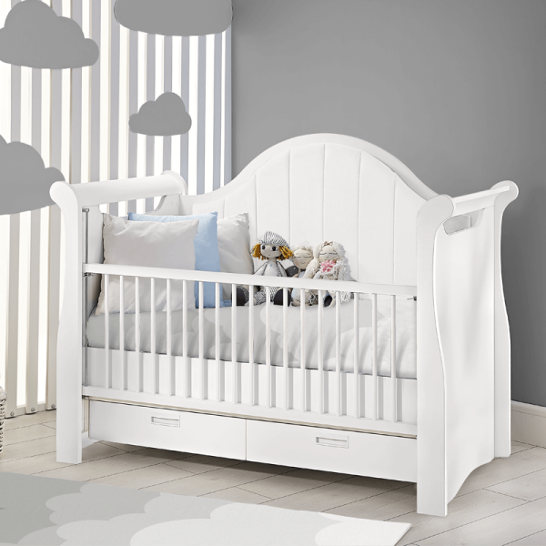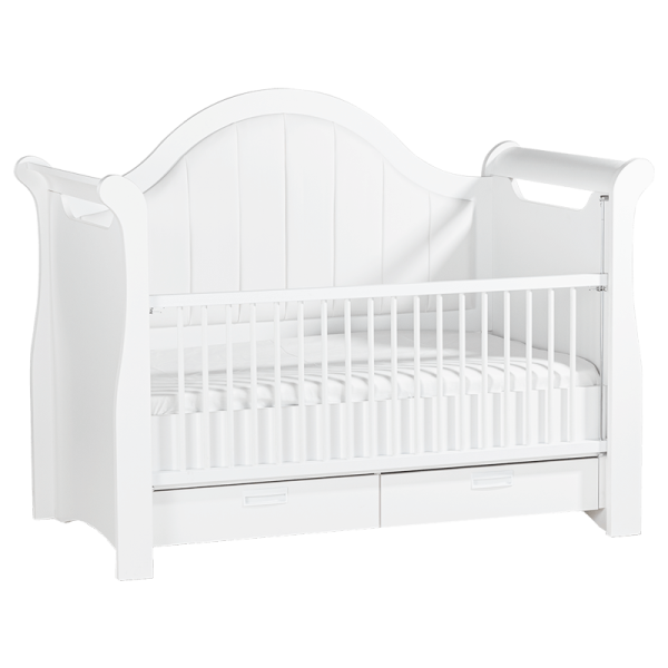 Бебешка кошара PORI 70 x 130 серията Pori е практично и компактно решение за всяка бебешка стая. Благодарение на компактните си размери, то е подходящо дори за по-малки пространства, а след отстраняване на решетката може да се използва и като удобно място за сядане. Двете чекмеджета в основата осигуряват допълнително пространство за съхранение на бебешки аксесоари или дрешки. Страничната решетка се спуска с лекота, за да улесни достъпа до детето. Всички ръбове са внимателно заоблени, което допринася за по-голяма сигурност по време на употреба.