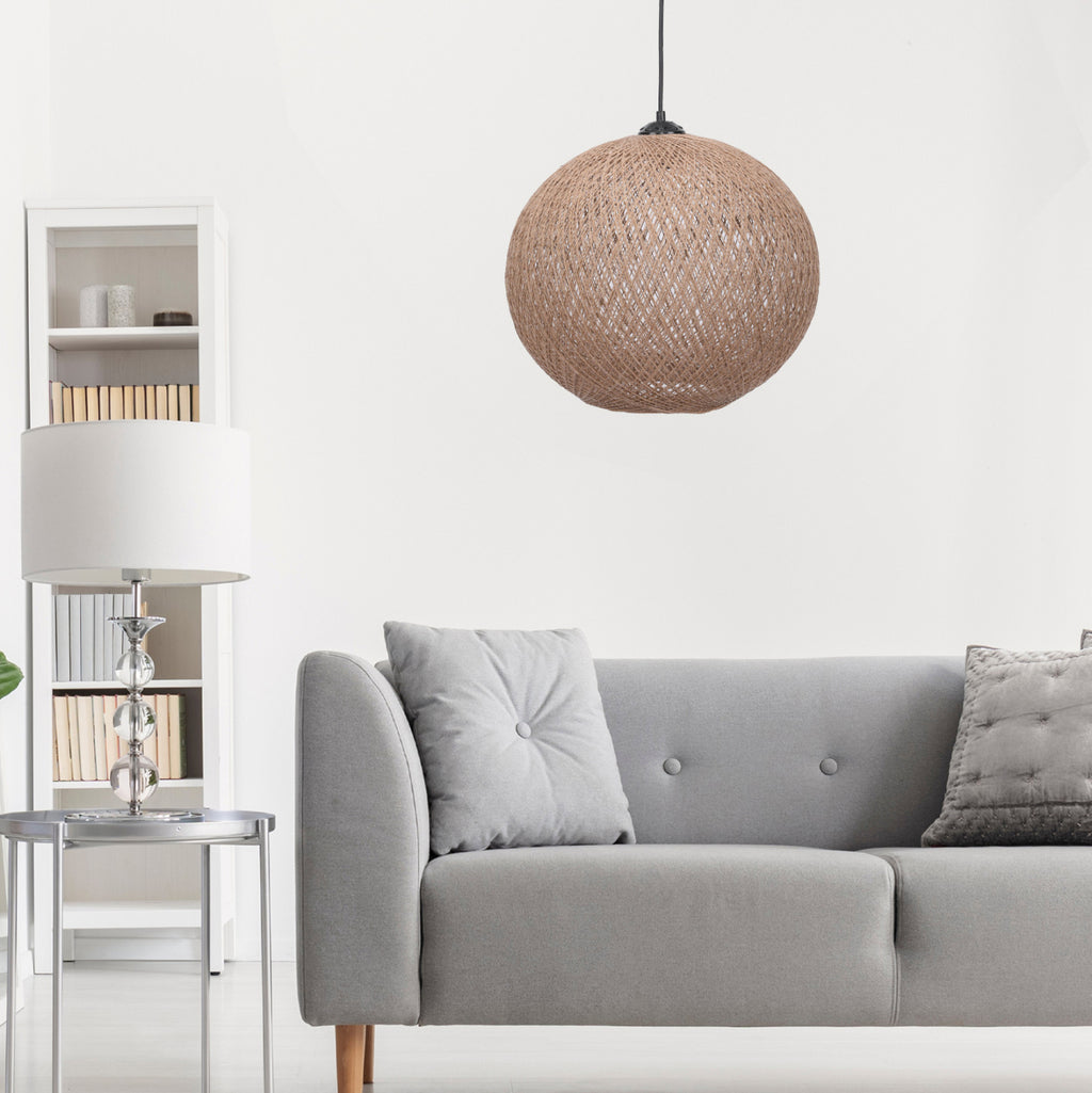 Ако желаете да украсите вашето пространство с лампа в бохо стил, това е правилният избор. Покрит е с фино плетено въже от юта, висококачествено и издръжливо, в бежови и черни нюанси. Височината на лампата се регулира в зависимост от начина на поставяне, така че да можете да я конфигурирате на височината, която ви удовлетворява. Лампа, която ще внесе уникален ефект във вашето пространство и ще промени настроението ви към по-добро. Дизайнът и формата, които има, правят светлината да се разсейва невероятно, когато лампата работи. Перфектен за вашия дом или бизнес. Приема крушка Е27 до 60W, която не е включена в комплекта. Абажур: Бежов - Мек Размери: Φ38x70H см. Размери на капачката: Φ38x34Y см. Подходяща за лампа E27 max 45-60W европейско производство и произход. Продуктът се предлага във фабрична опаковка.