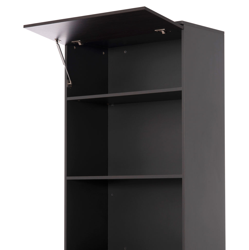 Професионална меламинова офис библиотека в нюанс СИВО и ВЕНГЕ. Разполага с три шкафа с вътрешен рафт, един отгоре и два отдолу, и три отворени места за съхранение. Поставете вашите книги, енциклопедии, дори декорации за стая и променете естетиката на вашия офис! МАТЕРИАЛ ЗА ПРОИЗВОДСТВО: Меламинът е вид дървесина под формата на ПДЧ. ПДЧ са продукти, които имат формата на плоча (панел). Като материал е много издръжлив и с голяма твърдост, в резултат на което е много устойчив на драскотини, протриване и петна. ПОДДРЪЖКА: Меламинът, който е строителният материал, се почиства много лесно от петна благодарение на твърдата си повърхност. Можете да избършете всички повърхности с влажна кърпа и това е достатъчно. За упорити петна можете да използвате мек почистващ препарат. РАЗМЕРИ: 80x40x200H см. Място за отговори отгоре: 76,5x36x32H cm. Рафтове: 76.5x36x41.5H см. 76.5x36x41.5H см. Място за отговори по-долу: 76,5x36x33,5H cm. 76,5x36x33,5H см. *Продуктът се доставя несглобен във фабрична опаковка **Точното цветопредаване на продукта може леко да се различава от действителния продукт поради различните настройки на всеки монитор.