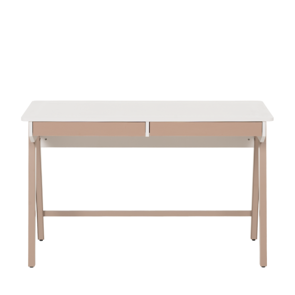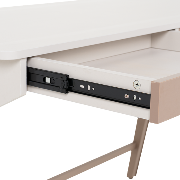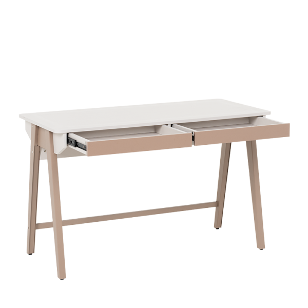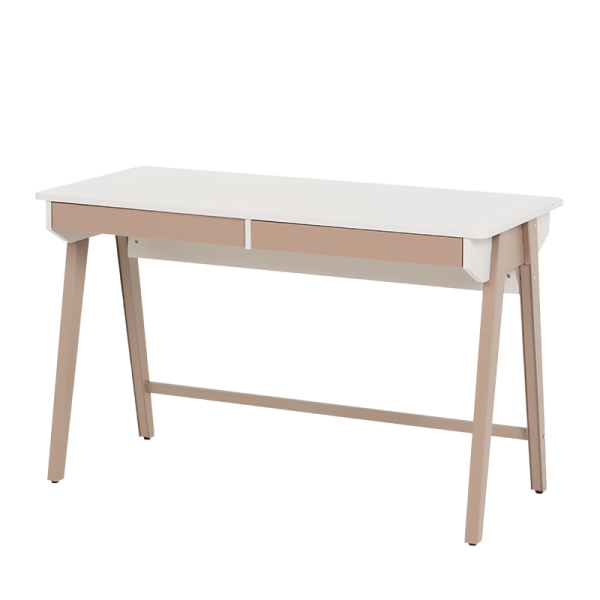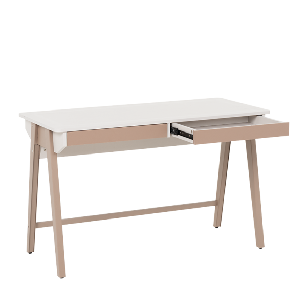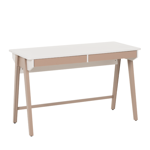 Бюро Makati впечатлява с модерен дизайн и прецизна изработка, които го правят отличен избор както за домашен офис, така и за младежка стая. Плотът в мек цвят е с приятна на допир повърхност и предлага достатъчно пространство за работа и учене. Двете чекмеджета се отварят плавно и без усилие, предоставяйки удобно място за съхранение на принадлежности, тетрадки или офис материали. Цветовата комбинация в натурални нюанси създава усещане за уют и елегантност, без да натоварва интериора.