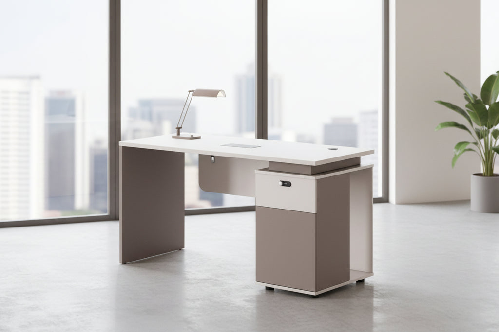 Професионално бюро с шкаф отдясно NEWLINE в екрю и светлокафяво Професионалното бюро NEWLINE има шкаф от дясната страна, докато седите, и предлага сравнително малка, но удобна работна повърхност с модерна естетика. Комбинацията от меламин в екрю и светлокафяво създава ярък и елегантен резултат, подходящ за модерни офиси и домашни офиси с високи изисквания. Разполага с кръгъл отвор на повърхността за правилно подреждане на кабелите и чисто работно място. Шкафът от дясната страна няма рафтове, но има чекмедже с 3-цифрена кодова ключалка отгоре. ______________________________________ Характеристики на продукта • Професионално бюро с шкаф от дясната страна • Меламин в екрю и светлокафяво • Кръгъл отвор на повърхността за управление на кабелите • Шкаф без рафтове • Чекмедже с 3-цифрена кодова ключалка • Дълбоко чекмедже със скрита дръжка • Отворено пространство за съхранение зад шкафа ______________________________________ Размери • Общи размери: 120x60x75H см. _____________________________________ Строителни материали • Повърхности и корпус, изработени от издръжлив висококачествен меламин ______________________________________ Поддръжка • Почиствайте с мека, леко влажна кърпа • Избягвайте абразивни материали и силни почистващи препарати • Подсушавайте повърхността след почистване ______________________________________ Предимства • Стандартна, но ергономична работна повърхност • Цялостна организация с чекмедже и шкаф • Сигурно съхранение с кодова ключалка • Отлично управление на кабели и електрическо оборудване • Модерен дизайн за професионални пространства ------------------------------------------------------------------------------------------------------------------ ---***ПРОДУКТЪТ ТРЯБВА ДА СЕ СГЛОБЯВА САМО ОТ КВАЛИФИЦИРАНИ ТЕХНИЦИ***--- ** Цветопредаването на продукта може леко да се различава от фотографското му представяне на вашия екран.