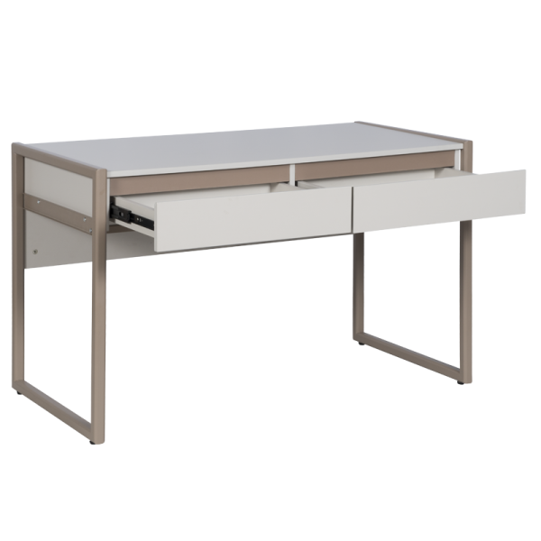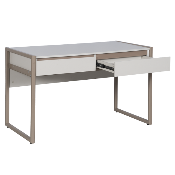 Бюро SUBIC съчетава елегантен дизайн и практичност. Изработено е от ПДЧ с меламиново покритие и метална конструкция с прахово боядисани крака, което осигурява стабилност и дълготрайност. Разполага с две чекмеджета за съхранение на документи и офис принадлежности, а изчистените линии го правят подходящо както за домашен офис, така и за работна среда.
