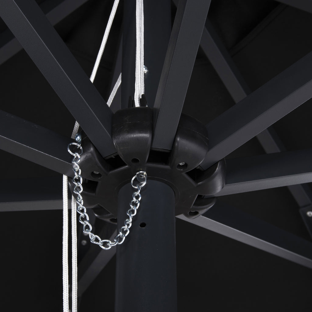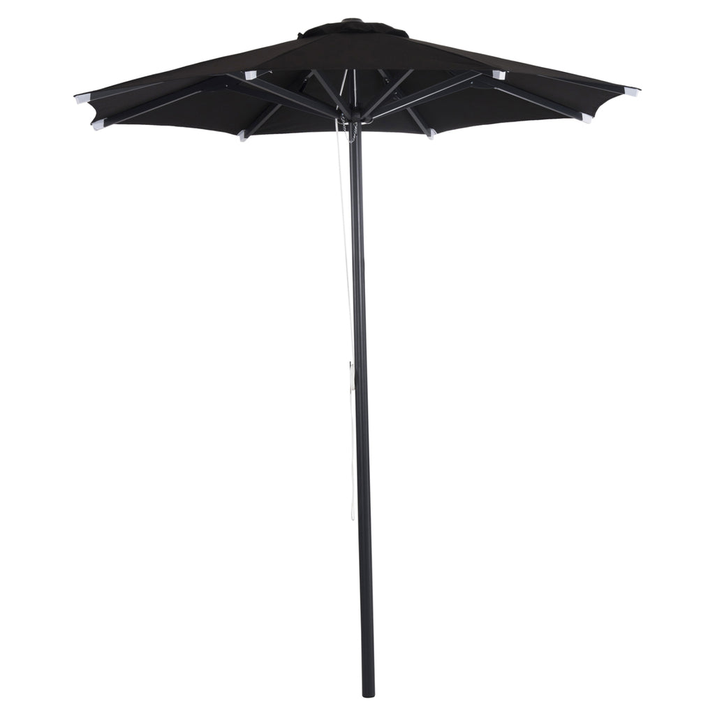 Кръгъл професионален алуминиев чадър Φ2.20м. С монолитна алуминиева тръба с диаметър Φ50mm с 8 алуминиеви спици 18x28 cm. Акрилен плат 250 грама. Подходящ за плажни заведения и за всякаква професионална употреба. Чадърът е подходящ за използване при ясно време. При нестабилно време чадърът трябва да бъде затворен.