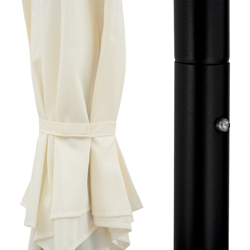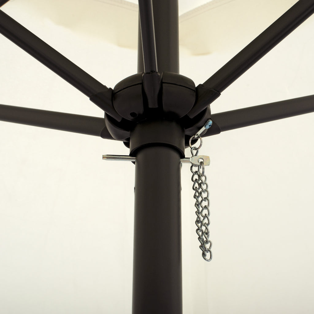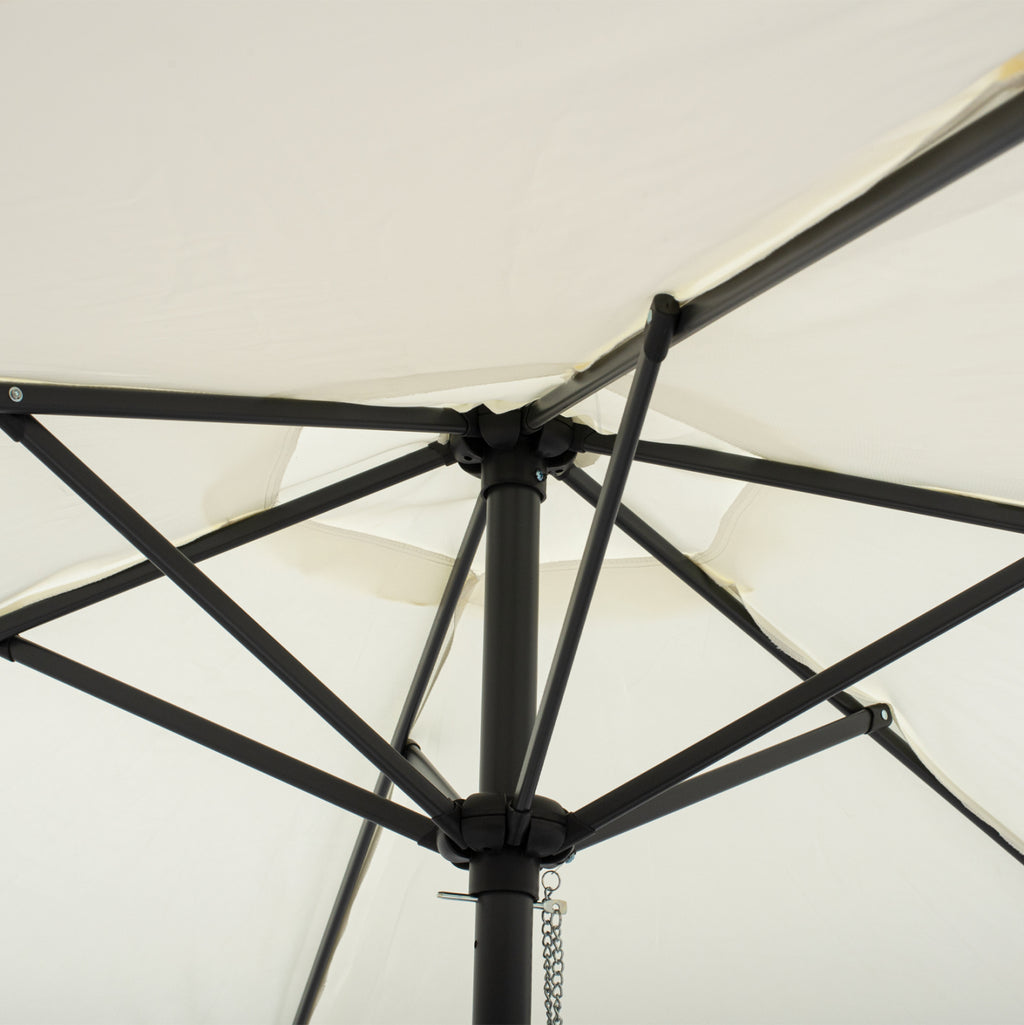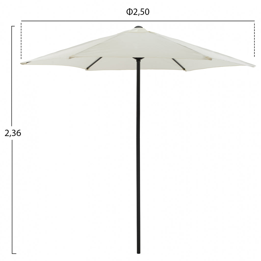 Разделен алуминиев чадър с push up система за отваряне, в ЧЕРЕН и сив нюанс. Изработена е от алуминиева рамка в сив нюанс и подплата от полиестерен плат в ЧЕРЕН нюанс. Има въздуховод, който позволява циркулация на въздуха, като същевременно намалява налягането му и три нива на регулиране на височината. Размери: Φ250x236 см. Размери на долния сплитер: 120 см. Размери на цепения плот: 127 см. 6 спици: 12х18 мм. Диаметър на тръбата: Φ38 мм. Материя: Полиестер 180гр с вентилация. Забележки: Чадърът е подходящ за домашна употреба. При нестабилно време трябва да бъде затворен. Продуктът се доставя във фабричната си опаковка.