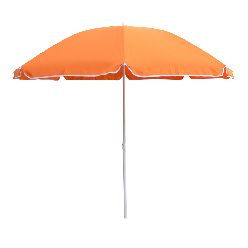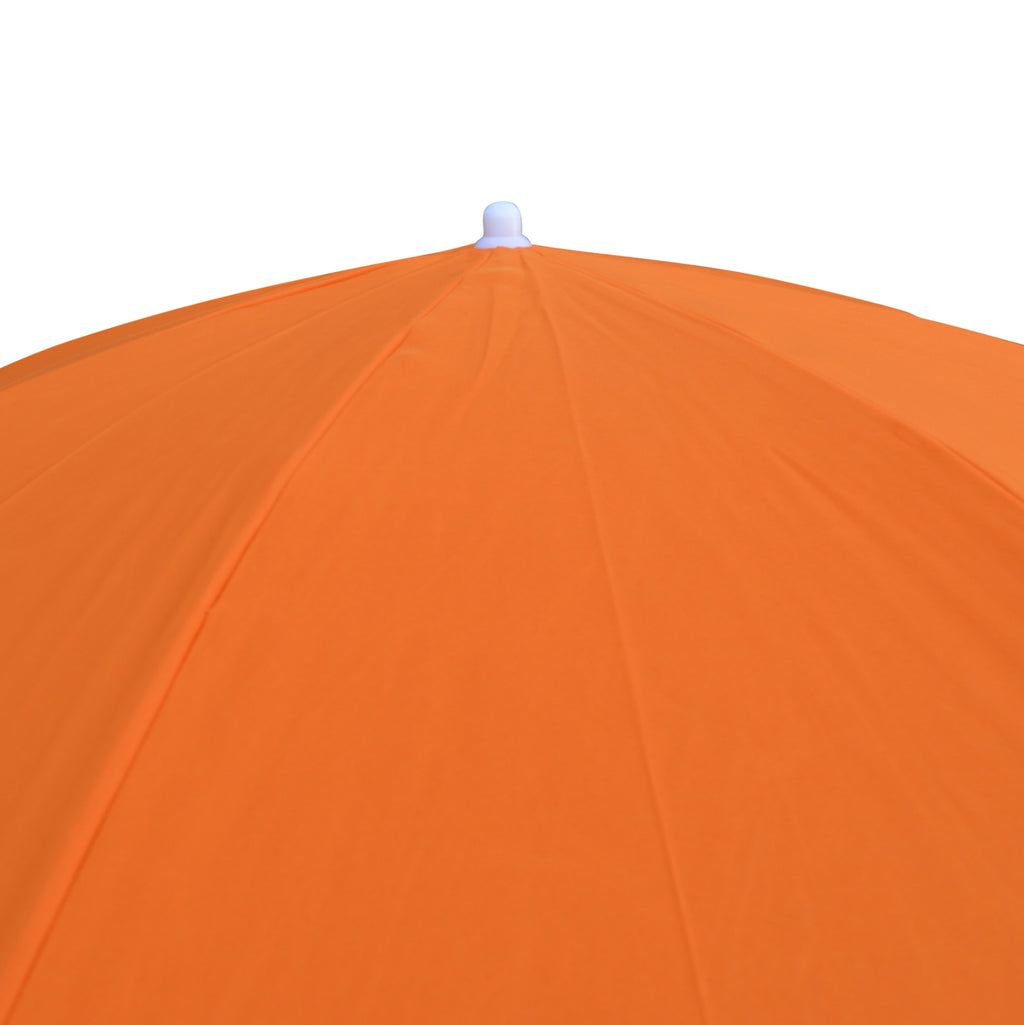 Кръгъл плажен чадър с прибиране и капаци, в оранжев нюанс с диаметър 2,20 метра и разделена тръба Φ25/22 мм, с 8 лъча от фибростъкло с дебелина 5 мм. Плат 180 грама. Чадърът е подходящ за използване при ясно време. При нестабилно време чадърът трябва да бъде затворен. Чадърът не подлежи на ремонт.