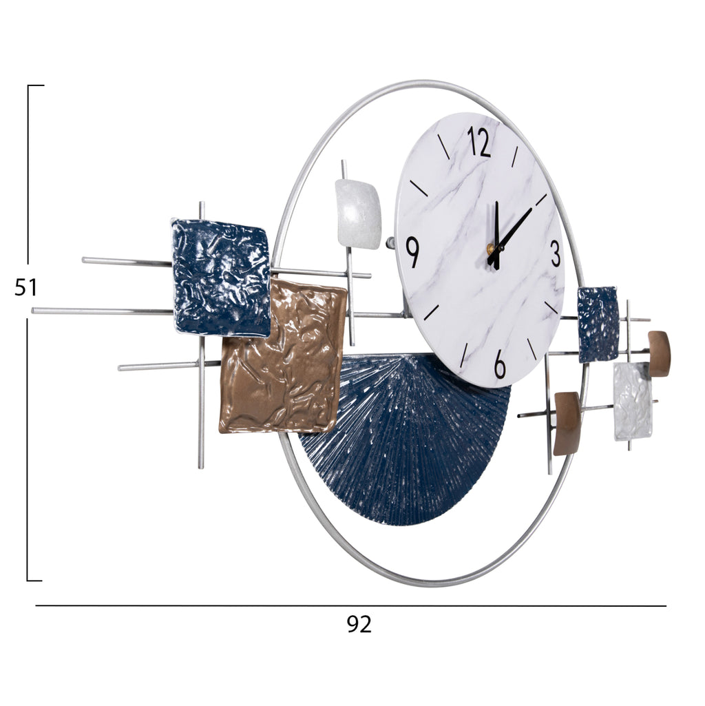 Красиво и основно естетическо, както и утилитарно допълнение за всяка стая във вашия дом или бизнес. Стенен часовник е класическа декоративна идея, която никога няма да остарее. Метален декоративен часовник КГ4209 в БЯЛ цвят с черни стрелки и цифри и различни форми в СИН и КАФЯВ цвят, е шикозно и атрактивно предложение за всяко пространство, което ще впечатли. РАЗМЕРИ: 92x51H см. МАТЕРИАЛ НА ИЗРАБОТКА: Този декоративен стенен часовник е изработен от метал. ПОДДРЪЖКА: Редовното почистване на прах ще запази часовника ви да изглежда като нов. ** Цветопредаването на продукта може леко да се различава от неговото фотографско представяне на вашия екран.