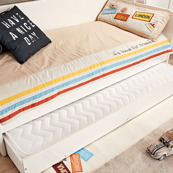Чекмеджето за детско легло JOYIN 90 x 190 е практично решение на колелца, което може да се използва както за съхранение, така и като допълнително легло с тънък матрак. Отваря се само в една посока.