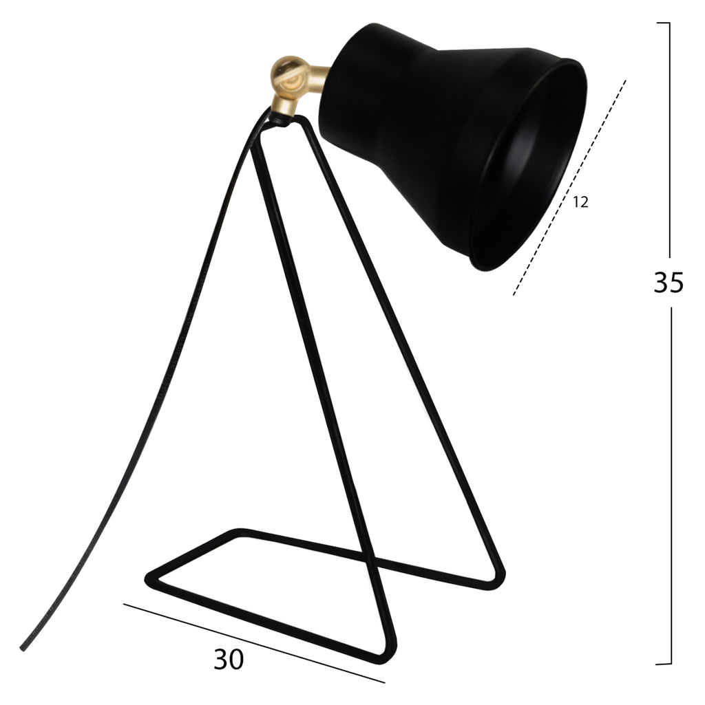 Модерна настолна лампа с метална основа и метална "шапка" в черен цвят. Има механизъм за регулиране на позицията на лампата само в "шапката" в цвят злато. Специална лампа, която ще привлече окото с простия си дизайн, включващ най-важното. В крайна сметка нищо повече не е необходимо, за да осветите приятно пространството, което ви интересува. ТЕХНИЧЕСКИ ХАРАКТЕРИСТИКИ: Цокъл на крушката: E14 Нормален цокъл на крушката Тип на крушката: LED- Максимална 15w Височина на цокъла: 12 см. Диаметър на шапката: 12см. Размери: 30х30 см. Обща височина: 35 см. Дължина на кабела: 150 см. Има CE сертификат. КОНСТРУКТИВЕН МАТЕРИАЛ: Цялата лампа е метална, следователно особено устойчива на повреди, падания и като цяло във времето. ПОДДРЪЖКА: Изцяло металната конструкция на лампата прави поддръжката й много лесна. Избършете всяка повърхност с влажна кърпа и лампата винаги ще изглежда като нова. ПРЕДИМСТВА: Простотата на дизайна, съчетана с черната метална рамка, правят тази настолна лампа да се откроява в пространството и да привлича вниманието въпреки малкия си размер. Може да се впише във всяка среда, независимо дали е поставен на нощно шкафче за вашето релаксиращо нощно четене или на обикновено бюро. Но не е само за дома. Може да декорира и професионални пространства, като кафенета, хотели, ресторанти и др. С подходящата LED лампа и в зависимост от температурата на цвета, който изберете, ще зададете тона, който желаете във всяка стая.