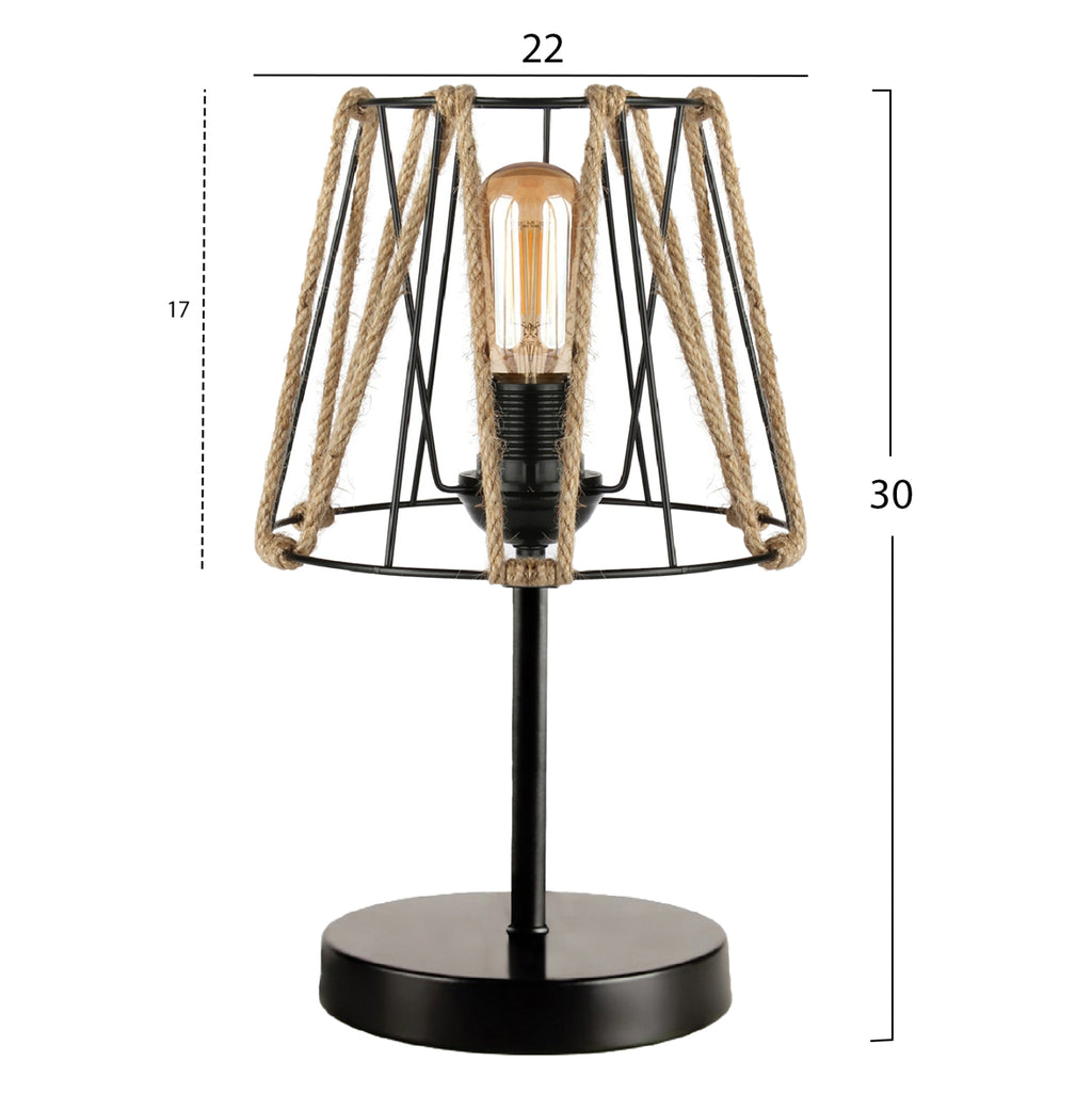 Това е модерна декоративна настолна лампа. „Шапката“ е фокусната точка на тази лампа. Има формата на отворена камбана (трапец), изработена от черна мрежа и въже, докато опорната основа е черна и кръгла. Модерна и елегантна настолна лампа, която незабавно разсейва светлината и създава атмосферата, която винаги сте си представяли за вашето пространство, така че можете да създадете свой собствен кът за почивка или дори декорация. Защото светлината означава повече от лампа. Това означава декорация, атмосфера, изкуство, усет и разбира се наука. ТЕХНИЧЕСКИ ХАРАКТЕРИСТИКИ: Цокъл на крушката: Е27 Цокъл с обикновена крушка Тип на крушката: Препоръчителна LED до 20w- Максимална 60w----**КРУШКАТА НЕ Е ВКЛЮЧЕНА В ЦЕНАТА Размери на цокъла: 22х17см. Обща височина: 37 см. Дължина на кабела: 150 см. Има CE сертификат. МАТЕРИАЛИ НА КОНСТРУКЦИЯТА: Лампата е изработена от метал и въже. Металната основа и колона предлагат класическа здравина и издръжливост, а въжето е истинско без примеси на синтетични влакна. ПОДДРЪЖКА: Лампата не се нуждае от специална поддръжка. Достатъчно е почистване на прах на редовни интервали. Преминаване с влажна кърпа върху металните части ще накара лампата да свети. Просто избягвайте всякакви химически почистващи препарати, тъй като те могат да избледнеят цвета както на стълба, така и на „шапката“. ПРЕДИМСТВА: Естетическото превъзходство на тази лампа ще я накара да се открои във вашето пространство. Освен в различни стаи във вашия дом, той може да се побере и в професионални помещения като ресторанти, кафенета, хотели и др. Прозрачната му конструкция хваща окото и може моментално да промени настроението ви. Светлината се разсейва прекрасно в пространството през мрежата и леко създава мрежестата шарка по стените. В същото време може да се комбинира с много други материали и дизайни, за да подчертае напълно естетическите достойнства на лампата, тъй като въжето е идеално за композиране на елегантни жилищни пространства, с безкрайни комбинации с необичайни щрихи. Само си го представете на нощното шкафче или в чакалнята на хотел през нощта. Страхотна снимка!
