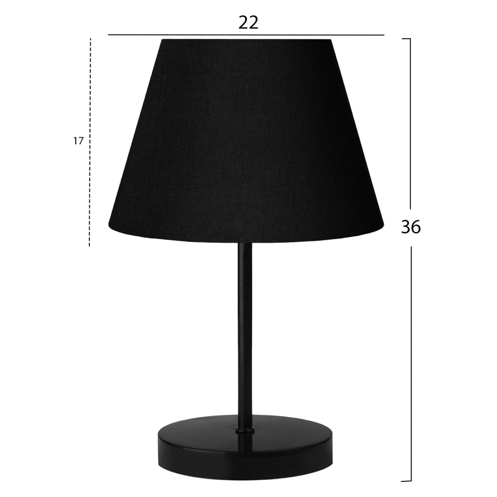Това е обикновена декоративна настолна лампа. „Шапката“ на лампата има формата на отворена камбана (трапецовидна) в черно, докато носещата основа е черна и кръгла. Проста и елегантна настолна лампа, която нежно разпръсква светлината и създава атмосферата, която винаги сте си представяли за вашето пространство, така че можете да създадете свой собствен кът за почивка или дори за декорация. Защото светлината означава повече от лампа. Това означава декорация, атмосфера, изкуство, усет и разбира се наука. ТЕХНИЧЕСКИ ХАРАКТЕРИСТИКИ: Цокъл на крушка: E27 Обикновен цокъл на крушка Тип на крушката: Препоръчителна LED до 20w- Максимална 60w Размери на цокъла: 22x17см. Обща височина: 36 см. Дължина на кабела: 150 см. Има CE сертификат. МАТЕРИАЛИ НА КОНСТРУКЦИЯТА: Основата и колоната на лампата са метални. Шапката е плат, а рамката на шапката е пластмасова. ПОДДРЪЖКА: Всички строителни материали на тази лампа са много лесни за поддръжка и почистване. Достатъчно е едно почистване на колоната и "шапката" от прах, за да изглежда лампата отново като нова. Също така, много внимателно, след като извадите лампата от гнездото, я избършете с влажна кърпа за още по-добри резултати. Просто избягвайте всякакви химически почистващи препарати, тъй като те могат да избледнеят цвета както на стълба, така и на „шапката“. ПРЕДИМСТВА: Лампата може да се използва извън дома и в офиси, кафенета, ресторанти, хотели и др. Тя е "мултиталантлива" и красива. Благодарение на изцяло черния си и семпъл дизайн, той лесно се комбинира с околното пространство, независимо дали е класическа декорация или по-модерна. Само си го представете на нощното шкафче или в чакалнята на хотел през нощта. Страхотна снимка!