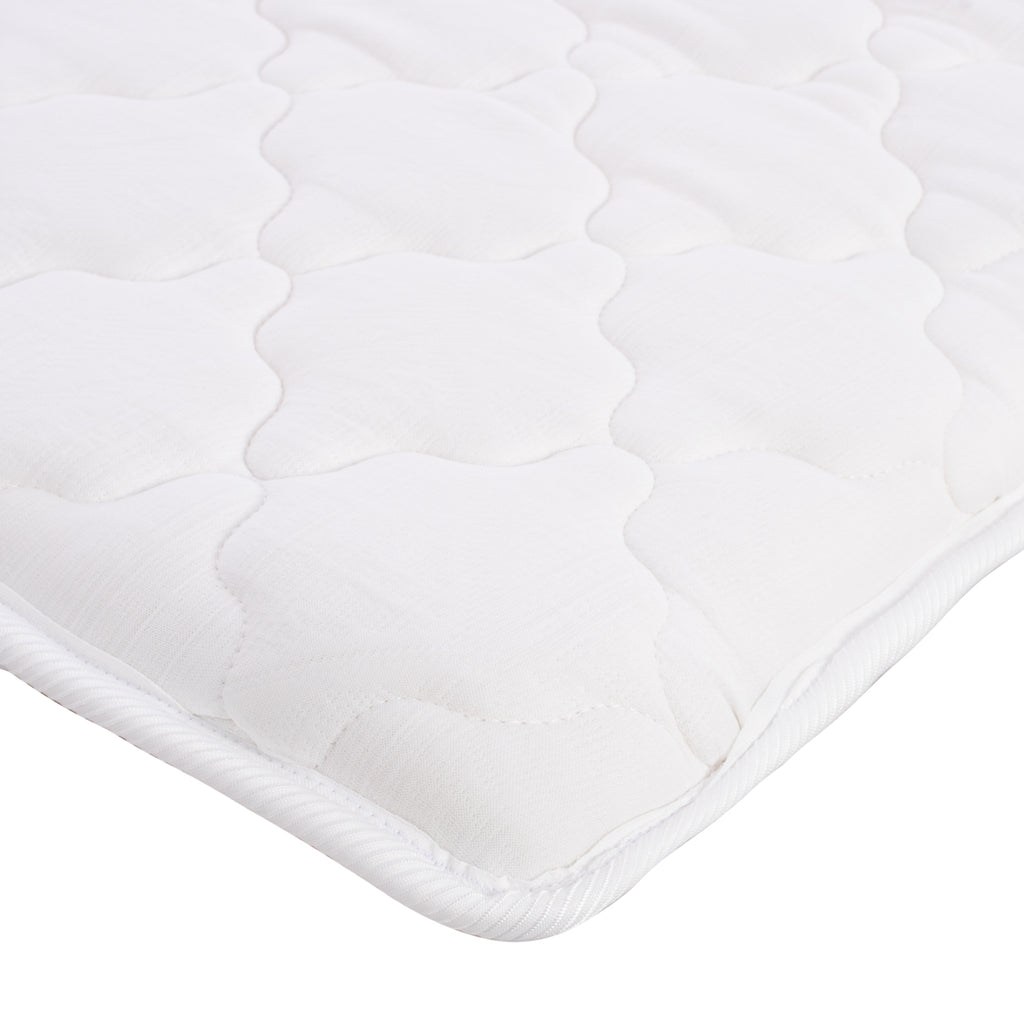 Топ матрак CLOUD, бял, 160x200 см, размер king size. Топ матракът CLOUD е идеалното допълнение към вашия матрак. Топ матракът е материал с дебелина приблизително колкото тънка завивка, който може да бъде направен от плат, пух или различни дунапренени материали (като виско, мемори пяна и др.), които поставяме върху матрака си. Топ матракът се поставя над матрака и под долния чаршаф, обикновено с ластици в четирите ъгъла на матрака. Обикновено го поставяме върху леглото, за да предпазим матрака си от петна, които един чаршаф може да не е достатъчен да задържи. Например, ако разлеем вино, той е в състояние да сведе до минимум щетите и просто поставяме топ матрака и чаршафа в пералнята. Можем също така да го поставим, за да „омекоти“ матрака или евентуално образуваните дупки, да ги „изгладим“ и по този начин да имаме по-комфортен и спокоен сън, като същевременно предлагаме на гърба, врата, раменете и краката правилната стойка за идеална почивка! ТЕХНИЧЕСКИ ХАРАКТЕРИСТИКИ: - Тапицерия от ватиран плат - 14dns 0.8 мм пяна (мека) - 24dns пяна (средна до твърда) РАЗМЕРИ: 160Χ200Χ5H см.