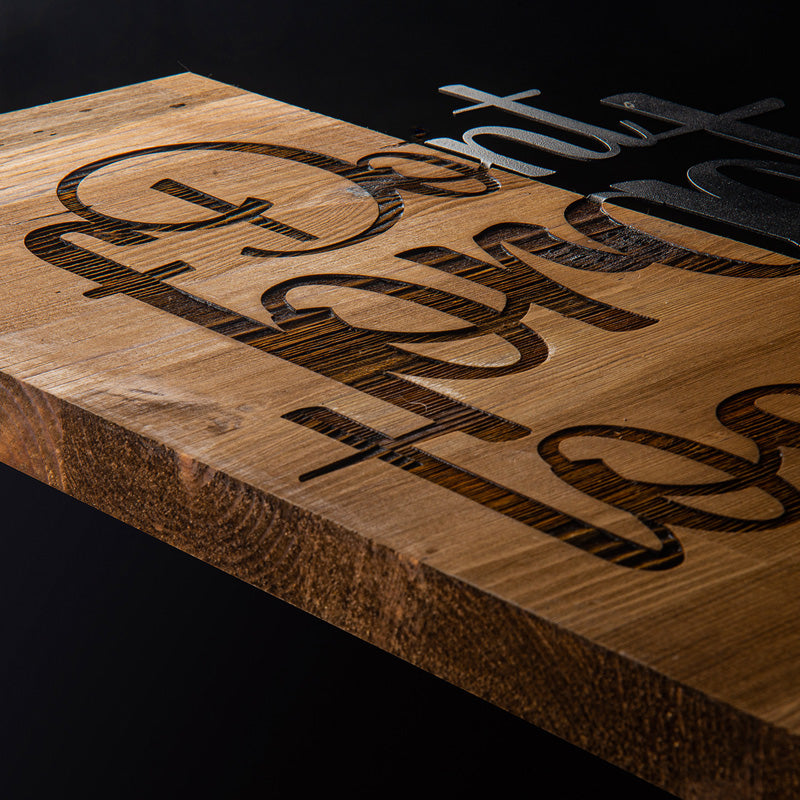 - Изработен от висококачествена борова дървесина (3 мм) с надпис, изработен от черен метал (1,5 мм).