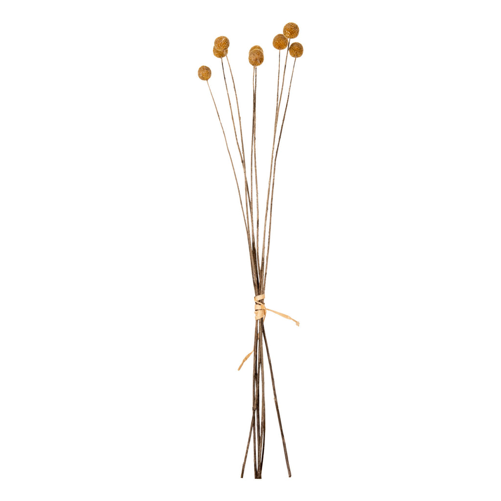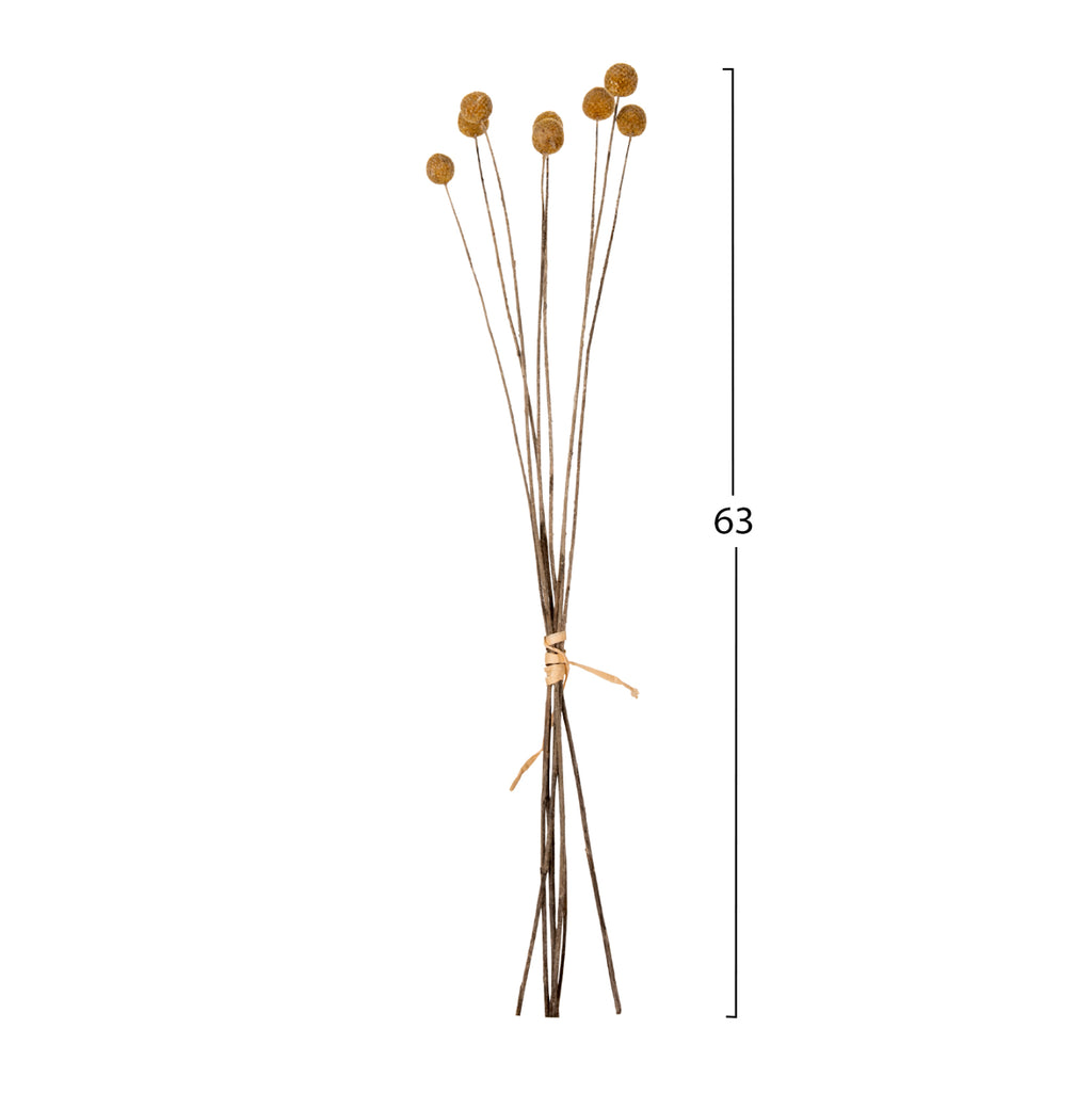 Открийте чисто новите декорации, добавени към нашия каталог. Това са изсушени растения, идеални за декориране с висока степен на правдоподобност, всяко ВЪТРЕШНО професионално или лично пространство. ТЕХНИЧЕСКИ ДЕТАЙЛИ: Код: КГ7956 Тип растение: CRASPEDIA GLOBOSA или GOLF BEAUTY, или BILLY BUTTONS- изсушени Разположение: Букет Цветове: жълто Размери: 63Y см. *Без UV защита ** Грижете се за продукта като за истинско растение ***BSCI сертификат за подобрени условия на работа на ниво международна търговия