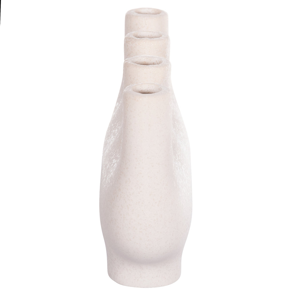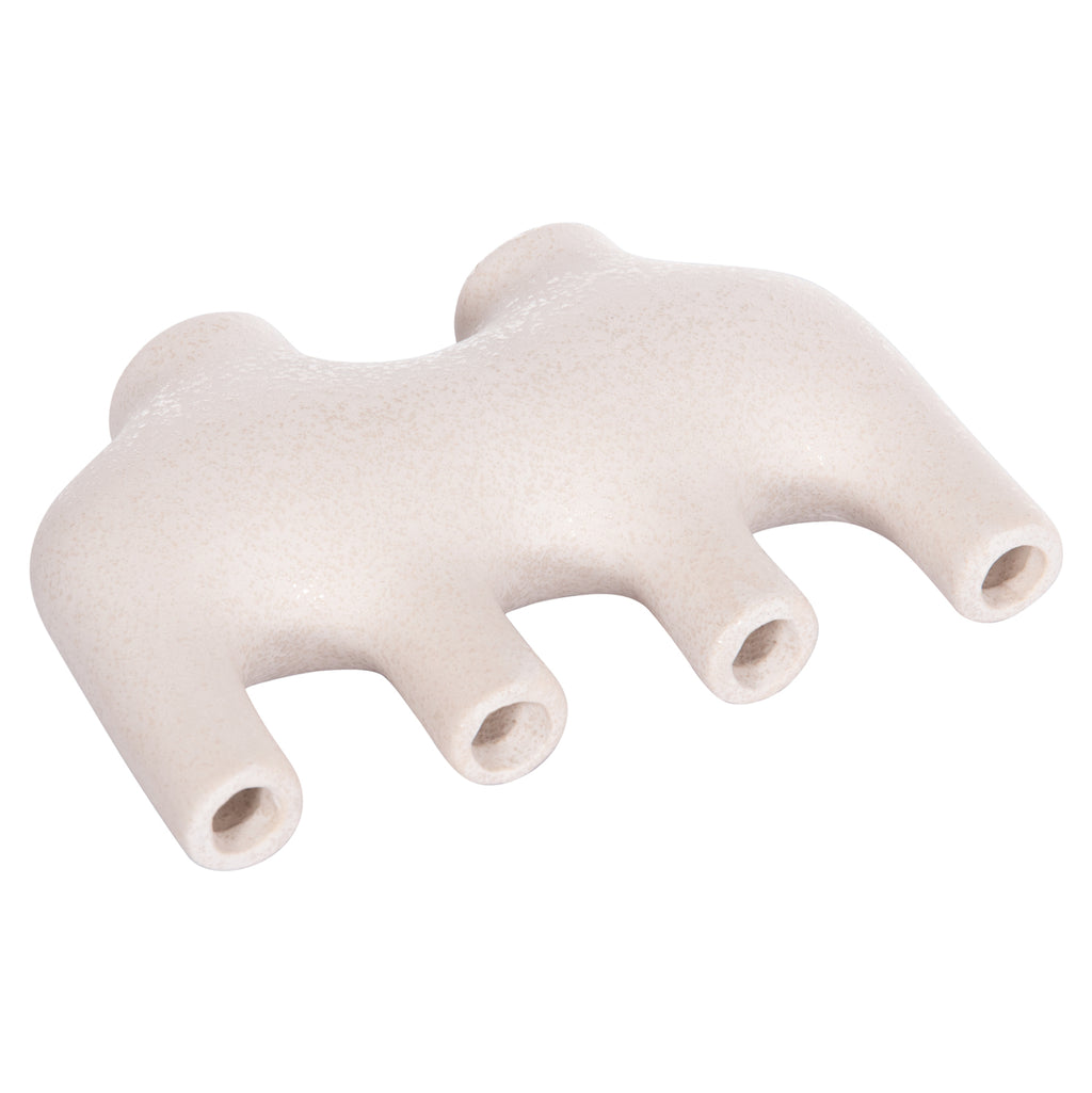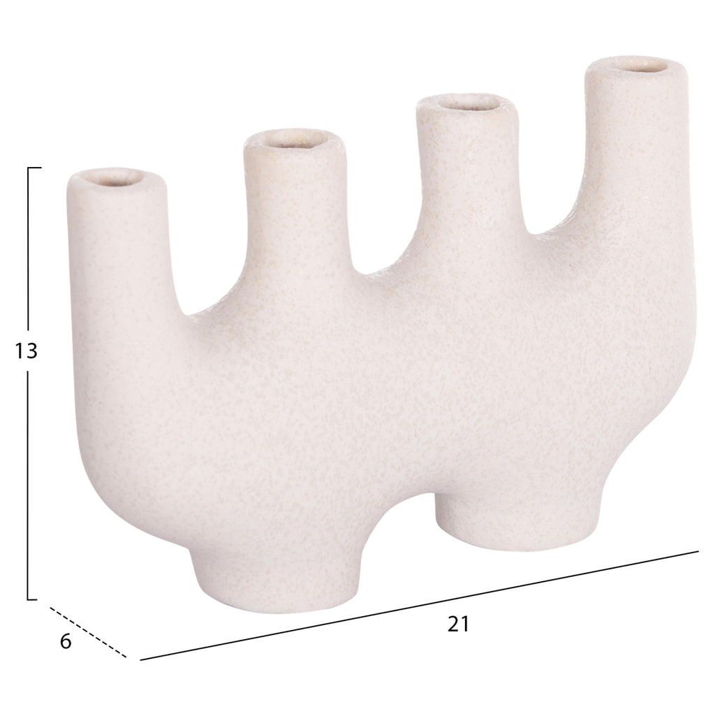 КГ4641.01 принадлежи към нашата нова серия декорации за маса "MANI". Това парче във формата на ваза с 4 гърла в OFF WHITE цвят е изработено от керамичен материал със специална обработка на кристализация, която придава вида и текстурата на кристал на керамичните предмети. РАЗМЕРИ: 21x6x13Y см. КОНСТРУКТИВЕН МАТЕРИАЛ: Керамичният материал е направен чрез нагряване и охлаждане на естествена глина, което води до твърда и устойчива на топлина и надраскване повърхност. ПОДДРЪЖКА: Обикновено е достатъчно да почистите тази декорация от прах. Ако искате, можете да го избършете с влажна кърпа, но избягвайте използването на химически почистващи препарати. * Цветопредаването на продукта може леко да се различава от неговото фотографско представяне на вашия екран.