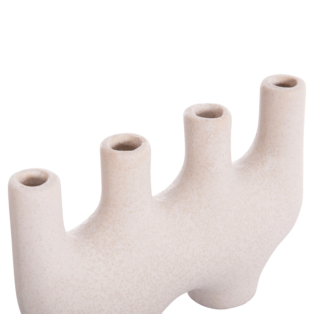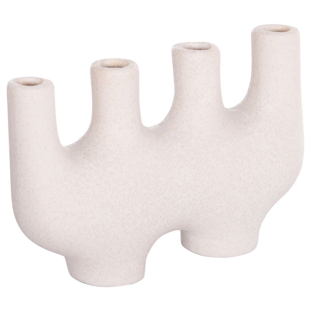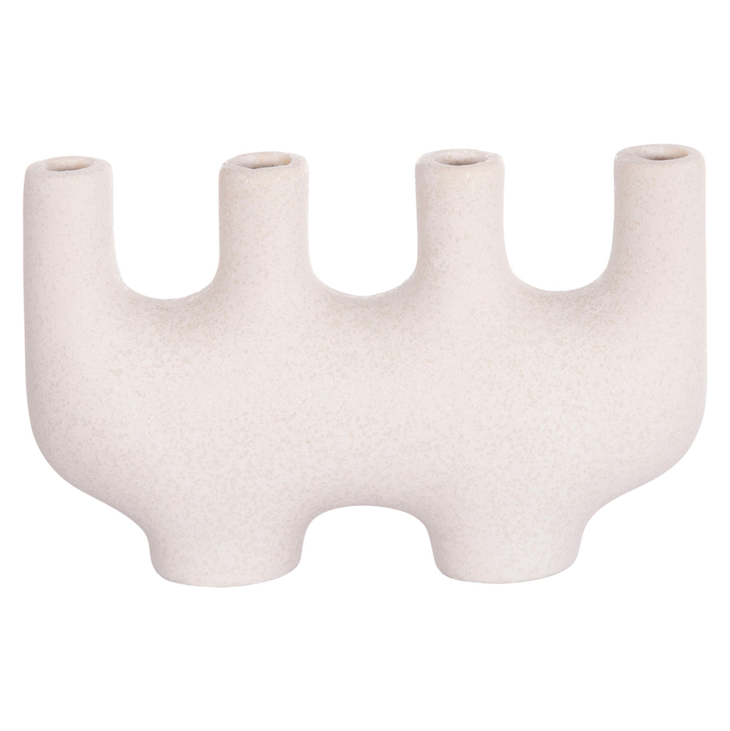 КГ4641.01 принадлежи към нашата нова серия декорации за маса "MANI". Това парче във формата на ваза с 4 гърла в OFF WHITE цвят е изработено от керамичен материал със специална обработка на кристализация, която придава вида и текстурата на кристал на керамичните предмети. РАЗМЕРИ: 21x6x13Y см. КОНСТРУКТИВЕН МАТЕРИАЛ: Керамичният материал е направен чрез нагряване и охлаждане на естествена глина, което води до твърда и устойчива на топлина и надраскване повърхност. ПОДДРЪЖКА: Обикновено е достатъчно да почистите тази декорация от прах. Ако искате, можете да го избършете с влажна кърпа, но избягвайте използването на химически почистващи препарати. * Цветопредаването на продукта може леко да се различава от неговото фотографско представяне на вашия екран.