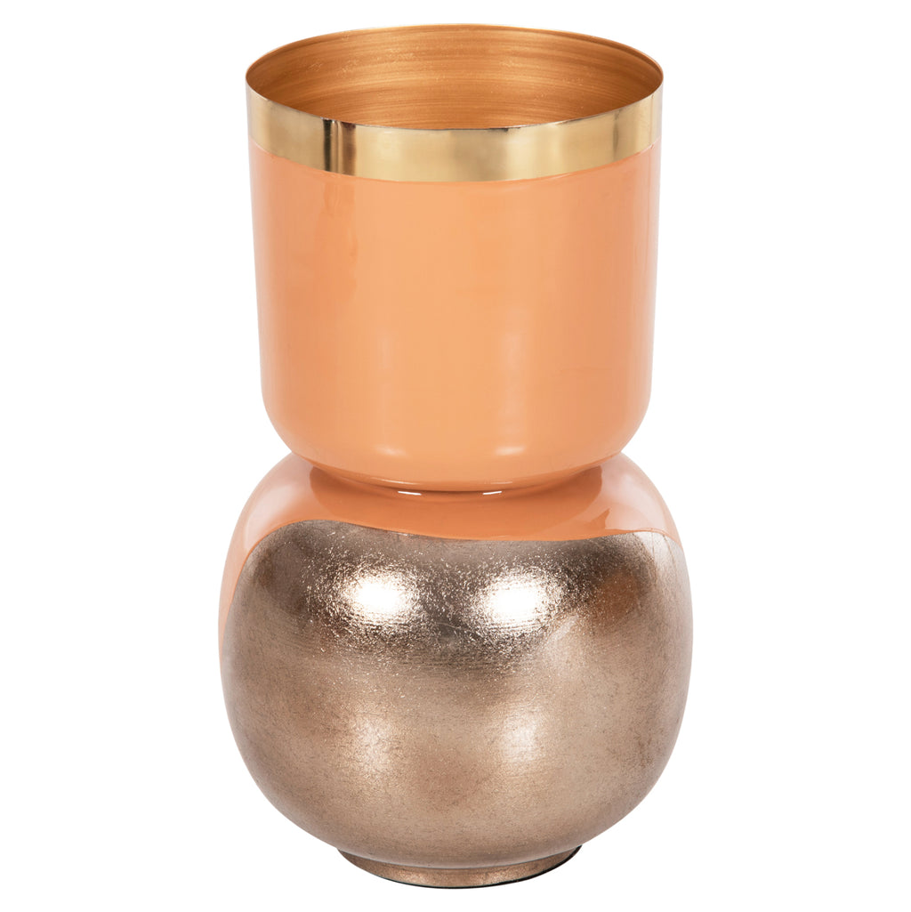 Декоративна ваза за маса LINGON е изцяло метална и се състои от две части. Почти сферичната основа и буркана с голямо гърло, залепени върху основата. Цветът му е СЬОМГА със ЗЛАТЕН около устата, докато основата е СЬОМГА с четка СРЕБРИСТ мътен цвят. Тази ваза ще украси всяко пространство, независимо дали у дома или във вашия бизнес. РАЗМЕРИ: Φ21x37.5H см. Устие: Φ18,5 см. ПОДДРЪЖКА: Едно почистване с прах обикновено е достатъчно. Ако желаете, можете да го полирате с влажна кърпа, но не използвайте химически почистващи препарати. ** Цветопредаването на продукта може леко да се различава от неговото фотографско представяне на вашия екран.