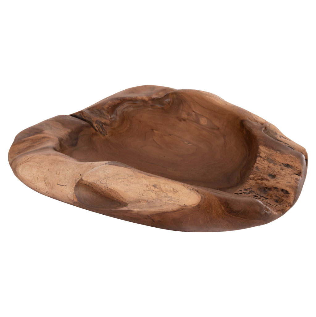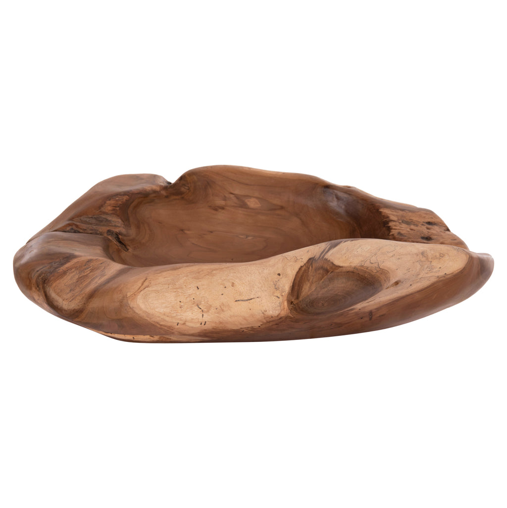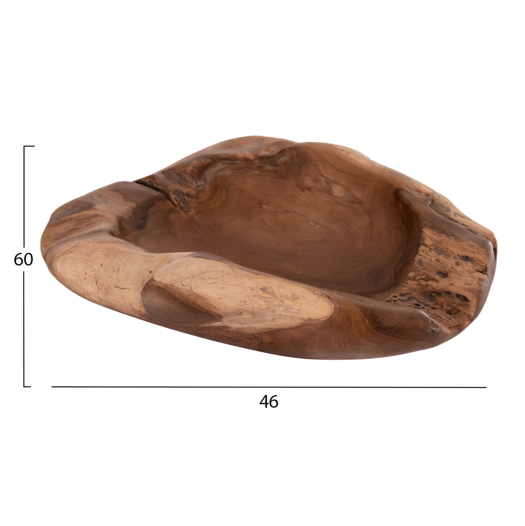 Ако искате да украсите масата си с красиво ръчно изработено произведение, NOKI е отличителен избор. Това е дървена купа с неправилна форма в естествения цвят на дървото, която със сигурност ще привлече окото. В крайна сметка декорацията винаги ще заема важно място във всяко пространство. РАЗМЕРИ: 60x46x15Y см. --- Съществуващите пукнатини или тези, които могат да се образуват с течение на времето се дължат на свиването-разширяването на живия организъм, наречен масивна дървесина, а не са производствен дефект, придавайки оригиналност и уникален дизайн на вашето пространство. По време на производствения процес съществуващите пукнатини се изглаждат и стабилизират с материал от същата дървесина. Поради това МОЖЕ ДА ИМА ЦВЕТОВИ ВАРИАЦИИ И РАЗЛИКИ В РАЗМЕРИТЕ на продукта поради размерите на обработената дървесина. Това не са дефект на продукта. МАТЕРИАЛИ НА ИЗРАБОТКА: Купата е изработена от едно парче масивно тиково дърво. Тикът е най-популярният вид твърда дървесина. Той е жълт до тъмно кафяв на цвят, изключително тежък, с висока якост, устойчив на атмосферни влияния, устойчив на стружки и не се разлага. Често водите на дървото му са силни и прави. Използва се за много вътрешни и външни конструкции. ПОДДРЪЖКА: Фактът, че ТИК е част от твърдата дървесина, го прави много лесен за поддръжка. Всичко, от което се нуждае, е почистване от прах и при необходимост почистване с влажна кърпа.