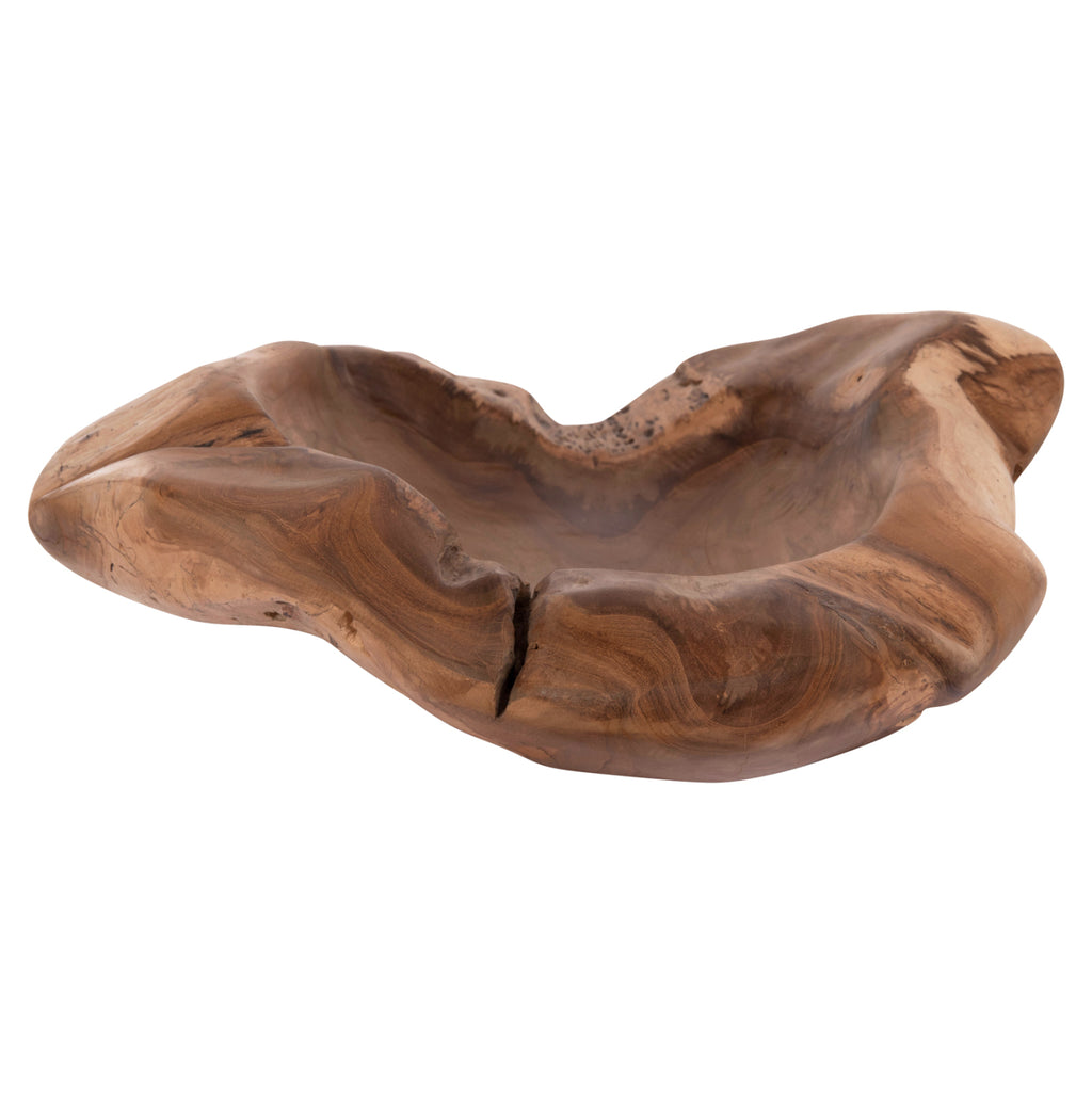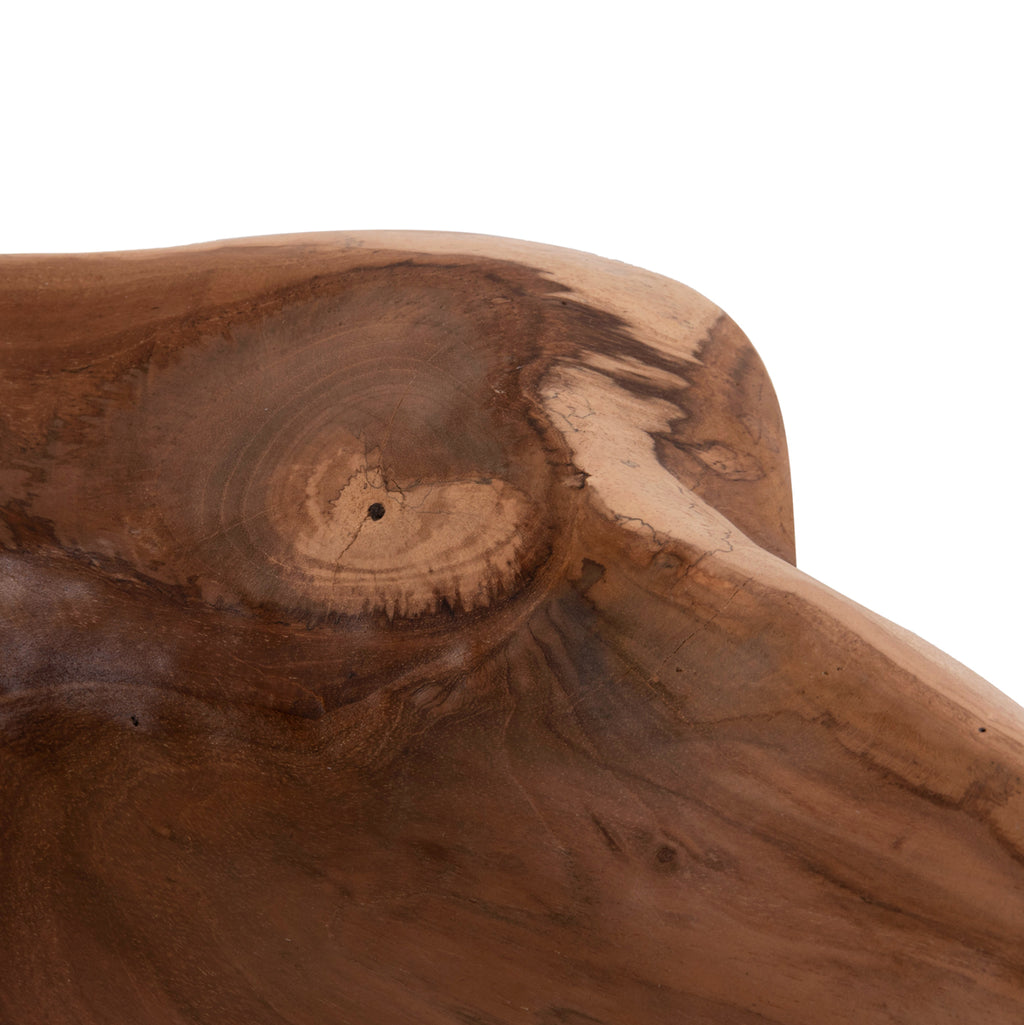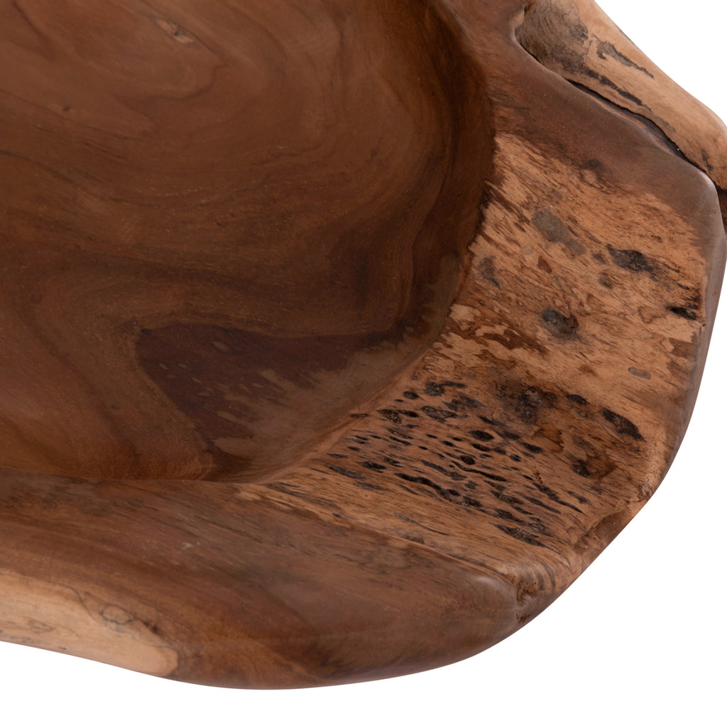 Ако искате да украсите масата си с красиво ръчно изработено произведение, NOKI е отличителен избор. Това е дървена купа с неправилна форма в естествения цвят на дървото, която със сигурност ще привлече окото. В крайна сметка декорацията винаги ще заема важно място във всяко пространство. РАЗМЕРИ: 60x46x15Y см. --- Съществуващите пукнатини или тези, които могат да се образуват с течение на времето се дължат на свиването-разширяването на живия организъм, наречен масивна дървесина, а не са производствен дефект, придавайки оригиналност и уникален дизайн на вашето пространство. По време на производствения процес съществуващите пукнатини се изглаждат и стабилизират с материал от същата дървесина. Поради това МОЖЕ ДА ИМА ЦВЕТОВИ ВАРИАЦИИ И РАЗЛИКИ В РАЗМЕРИТЕ на продукта поради размерите на обработената дървесина. Това не са дефект на продукта. МАТЕРИАЛИ НА ИЗРАБОТКА: Купата е изработена от едно парче масивно тиково дърво. Тикът е най-популярният вид твърда дървесина. Той е жълт до тъмно кафяв на цвят, изключително тежък, с висока якост, устойчив на атмосферни влияния, устойчив на стружки и не се разлага. Често водите на дървото му са силни и прави. Използва се за много вътрешни и външни конструкции. ПОДДРЪЖКА: Фактът, че ТИК е част от твърдата дървесина, го прави много лесен за поддръжка. Всичко, от което се нуждае, е почистване от прах и при необходимост почистване с влажна кърпа.