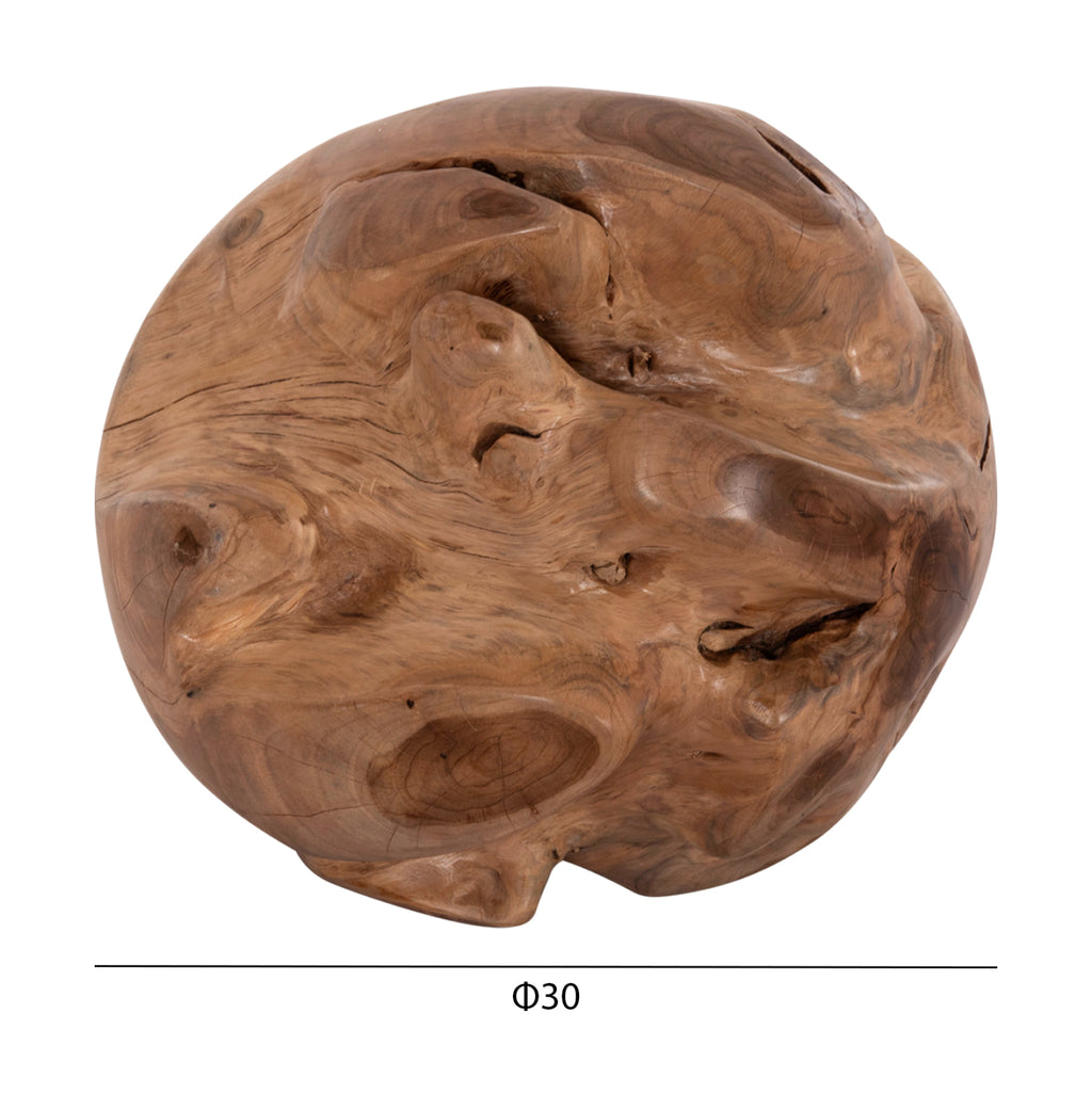 Подовата декорация CLEMOR ще придаде на вашето пространство още един "облик". Неговият почти сферичен дизайн е уникален и интересен, като същевременно може да се съчетае с много декоративни шарки както у дома, така и в професионални пространства. --- Съществуващите пукнатини или тези, които могат да се образуват с течение на времето се дължат на свиването-разширяването на живия организъм, наречен масивна дървесина, а не са производствен дефект, придавайки оригиналност и уникален дизайн на вашето пространство. По време на производствения процес съществуващите пукнатини се изглаждат и стабилизират с материал от същата дървесина. Поради това МОЖЕ ДА ИМА ЦВЕТОВИ ВАРИАЦИИ И РАЗЛИКИ В РАЗМЕРИТЕ на продукта поради размерите на обработената дървесина. Това не са дефект на продукта. РАЗМЕРИ: Φ30см. *Поради спецификата на масивната дървесина изображението и размерите могат да варират при всеки продукт. МАТЕРИАЛИ НА ИЗРАБОТКА: Декорацията е от масивно тиково дърво. Когато говорим за масивно дърво, имаме предвид дървета, направени изцяло от ствола на дърво. Масивната дървесина е най-скъпият избор по отношение на дървесината, но се откроява със своята вечна естетика. Тикът е най-популярният вид твърда дървесина. Той е жълт до тъмно кафяв на цвят, изключително тежък, с висока якост, устойчив на атмосферни влияния, устойчив на стружки и не се разлага. Често водите на дървото му са силни и прави. Използва се за много вътрешни и външни конструкции. ПОДДРЪЖКА: Фактът, че ТИК е част от твърдата дървесина, го прави много лесен за поддръжка. Всичко, от което се нуждае, е почистване от прах и при необходимост почистване с влажна кърпа.