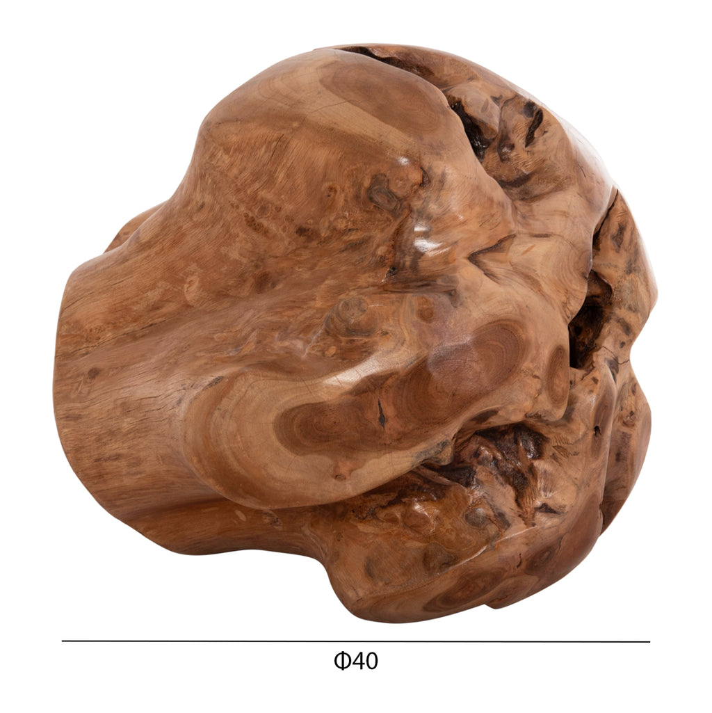 Подовата декорация CLEMOR ще придаде на вашето пространство още един "облик". Неговият почти сферичен дизайн е уникален и интересен, като същевременно може да се съчетае с много декоративни шарки както у дома, така и в професионални пространства. --- Съществуващите пукнатини или тези, които могат да се образуват с течение на времето се дължат на свиването-разширяването на живия организъм, наречен масивна дървесина, а не са производствен дефект, придавайки оригиналност и уникален дизайн на вашето пространство. По време на производствения процес съществуващите пукнатини се изглаждат и стабилизират с материал от същата дървесина. Поради това МОЖЕ ДА ИМА ЦВЕТОВИ ВАРИАЦИИ И РАЗЛИКИ В РАЗМЕРИТЕ на продукта поради размерите на обработената дървесина. Това не са дефект на продукта. РАЗМЕРИ: Φ40см. *Поради спецификата на масивната дървесина изображението и размерите могат да варират при всеки продукт. МАТЕРИАЛИ НА ИЗРАБОТКА: Декорацията е от масивно тиково дърво. Когато говорим за масивно дърво, имаме предвид дървета, направени изцяло от ствола на дърво. Масивната дървесина е най-скъпият избор по отношение на дървесината, но се откроява със своята вечна естетика. Тикът е най-популярният вид твърда дървесина. Той е жълт до тъмно кафяв на цвят, изключително тежък, с висока якост, устойчив на атмосферни влияния, устойчив на стружки и не се разлага. Често водите на дървото му са силни и прави. Използва се за много вътрешни и външни конструкции. ПОДДРЪЖКА: Фактът, че ТИК е част от твърдата дървесина, го прави много лесен за поддръжка. Всичко, от което се нуждае, е почистване от прах и при необходимост почистване с влажна кърпа.