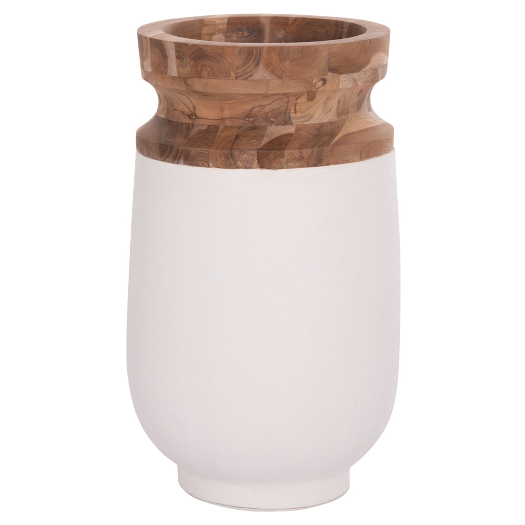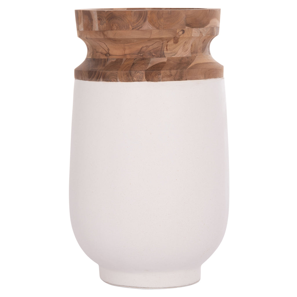 Ръчно изработената декоративна подова ваза LINTER е поредното ново допълнение към нашата гама за декориране на всяко пространство. Тя е изработена изцяло от фиброцимент в БЯЛ цвят с чучур от качествено тиково дърво, а размерите ѝ я правят внушителна в пространството. Идеална за разнообразни приложения и пространства. РАЗМЕРИ: Φ34x60H см. СТРОИТЕЛНИ МАТЕРИАЛИ: Фиброциментът е композитен строителен материал, изработен от цимент, подсилен с целулозни влакна. Известен е със своята издръжливост, устойчивост на гниене, вода и насекоми, което го прави лесен за поддръжка вариант. Предимства: • Изисква минимална поддръжка и е лесен за почистване. • Не е запалим. • Устойчивост на вода и атмосферни условия: Устойчив на различни климатични условия. • Устойчивост на гниене и вредители. ПОДДРЪЖКА: Обикновено е достатъчно да се почисти от прах, но избягвайте използването на химически почистващи препарати. ** Цветопредаването на продукта може леко да се различава от фотографското му представяне на вашия екран.