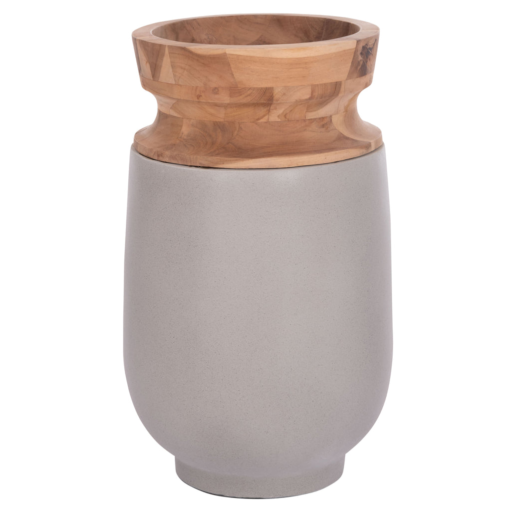 Ръчно изработената декоративна подова ваза LINTER е поредното ново допълнение към нашата гама за декориране на всяко пространство. Тя е изработена изцяло от фиброцимент в СИВ цвят с чучур от качествено тиково дърво, а размерите ѝ я правят внушителна в пространството. Идеална за разнообразни приложения и пространства. РАЗМЕРИ: Φ34x60H см. СТРОИТЕЛНИ МАТЕРИАЛИ: Фиброциментът е композитен строителен материал, изработен от цимент, подсилен с целулозни влакна. Известен е със своята издръжливост, устойчивост на гниене, вода и насекоми, което го прави лесен за поддръжка вариант. Предимства: • Изисква минимална поддръжка и е лесен за почистване. • Не е запалим. • Устойчивост на вода и атмосферни условия: Устойчив на различни климатични условия. • Устойчивост на гниене и вредители. ПОДДРЪЖКА: Обикновено е достатъчно да се почисти от прах, но избягвайте използването на химически почистващи препарати. ** Цветопредаването на продукта може леко да се различава от фотографското му представяне на вашия екран.