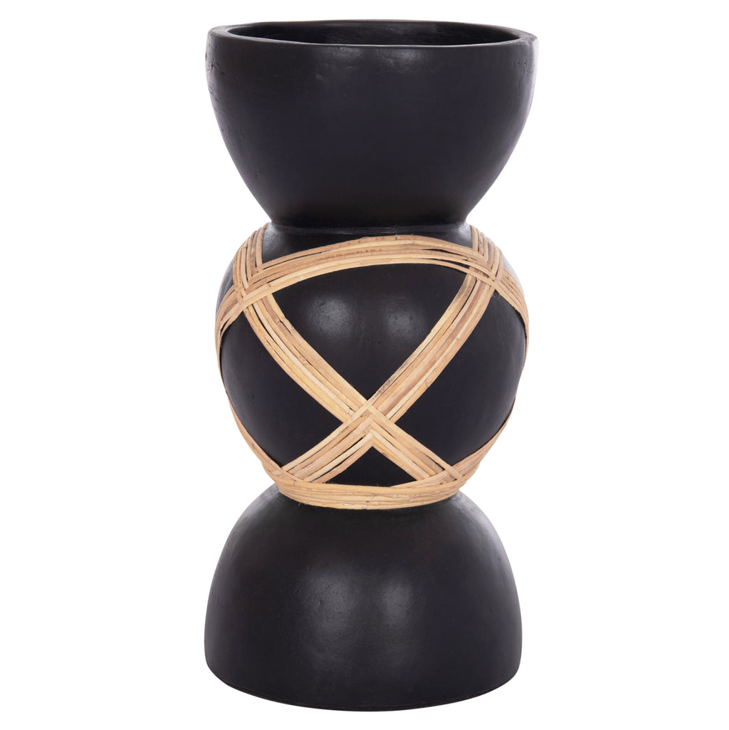Ръчно изработената декоративна подова ваза MAYNARD е красив декоративен елемент за всяко пространство. Изработен е изцяло от Фиброцимент в ЧЕРЕН цвят с декорация от естествен ратан. Идеален за множество приложения и пространства. РАЗМЕРИ: Φ32x62.5H см. СТРОИТЕЛНИ МАТЕРИАЛИ: Фиброциментът е композитен строителен материал, произведен от цимент, подсилен с целулозни влакна. Известен е със своята издръжливост, устойчивост на гниене, вода и насекоми, което го прави избор с ниска поддръжка. Предимства: • Изисква минимална поддръжка и се почиства лесно. • Не е запалим. • Устойчивост на вода и атмосферни влияния: Устойчив на различни климатични условия. • Устойчивост на гниене и вредители. ПОДДРЪЖКА: Едно почистване с прах обикновено е достатъчно, но избягвайте използването на химически почистващи препарати. ** Цветопредаването на продукта може леко да се различава от неговото фотографско представяне на вашия екран.
