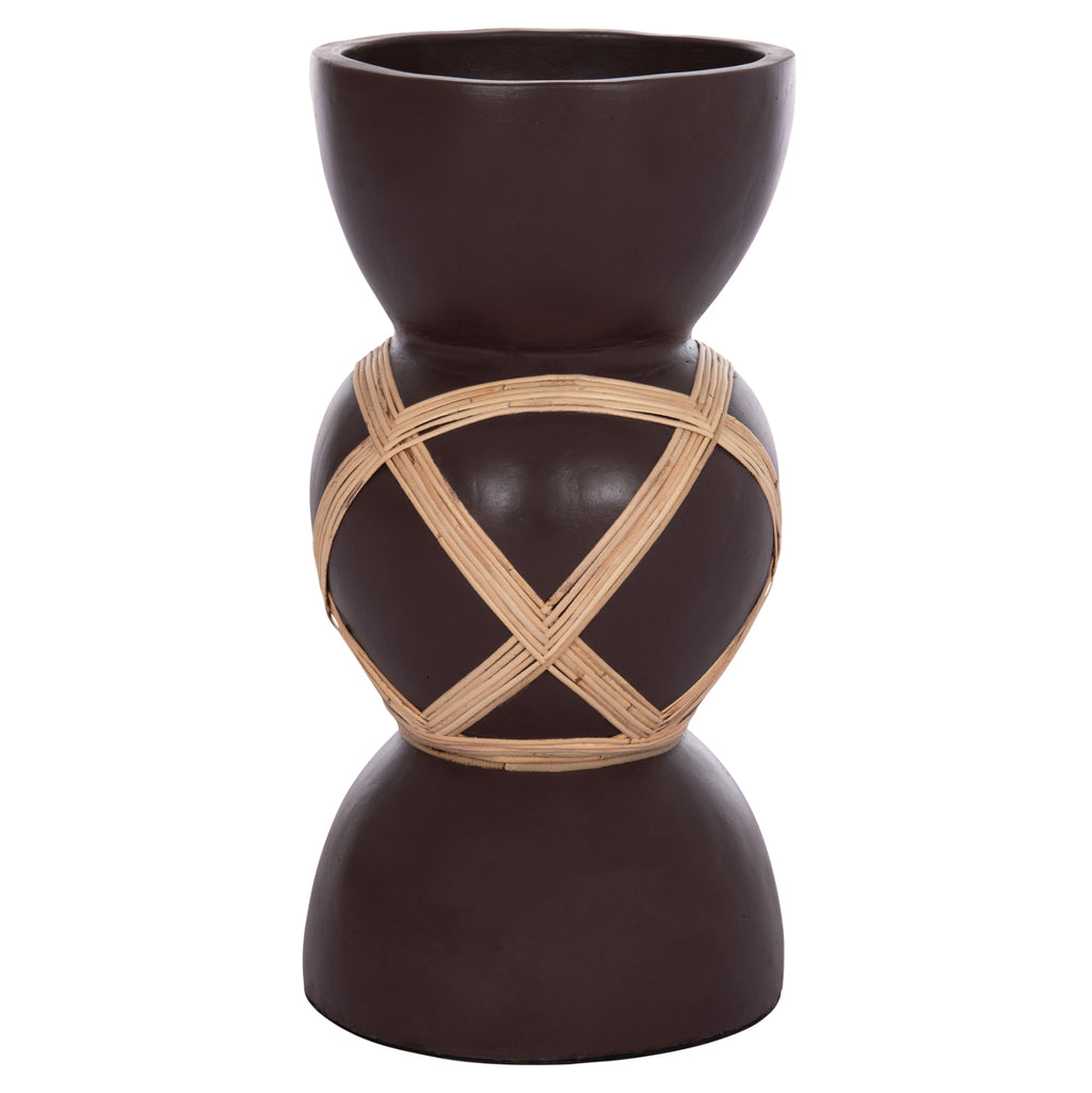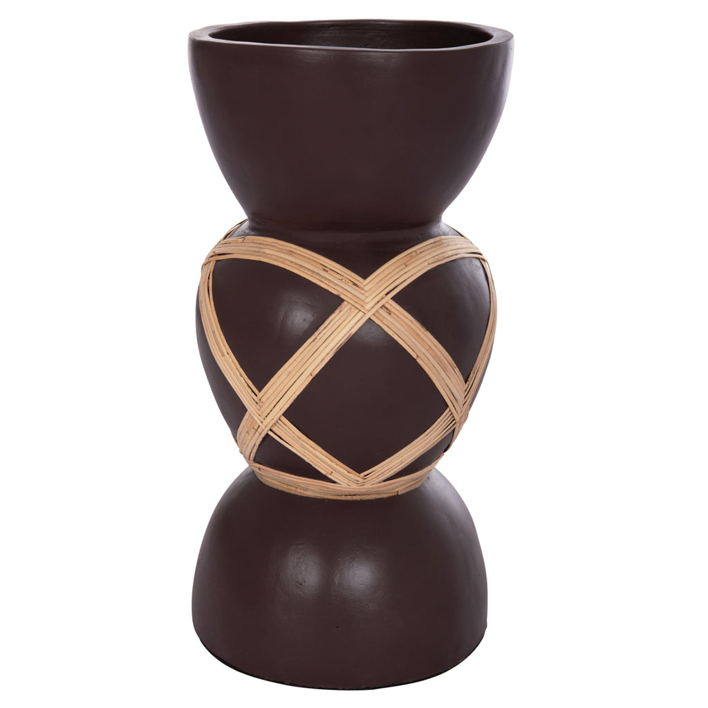 Ръчно изработената декоративна подова ваза MAYNARD е красив декоративен елемент за всяко пространство. Изработен е изцяло от Фиброцимент в цвят ШОКОЛАД с декорация от естествен ратан. Идеален за множество приложения и пространства. РАЗМЕРИ: Φ32x62.5H см. СТРОИТЕЛНИ МАТЕРИАЛИ: Фиброциментът е композитен строителен материал, произведен от цимент, подсилен с целулозни влакна. Известен е със своята издръжливост, устойчивост на гниене, вода и насекоми, което го прави избор с ниска поддръжка. Предимства: • Изисква минимална поддръжка и се почиства лесно. • Не е запалим. • Устойчивост на вода и атмосферни влияния: Устойчив на различни климатични условия. • Устойчивост на гниене и вредители. ПОДДРЪЖКА: Едно почистване с прах обикновено е достатъчно, но избягвайте използването на химически почистващи препарати. ** Цветопредаването на продукта може леко да се различава от неговото фотографско представяне на вашия екран.