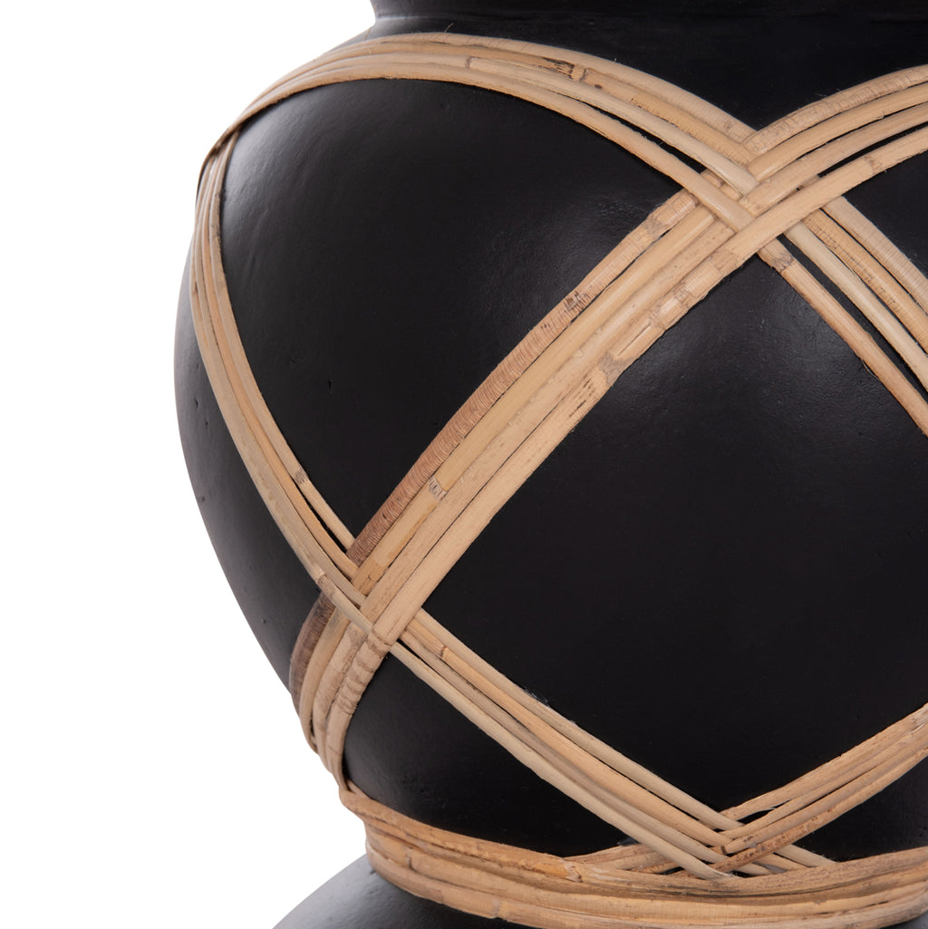Ръчно изработената декоративна подова ваза MAYNARD е красив декоративен елемент за всяко пространство. Изработен е изцяло от Фиброцимент в ЧЕРЕН цвят с декорация от естествен ратан. Идеален за множество приложения и пространства. РАЗМЕРИ: Φ27.5x50H см. СТРОИТЕЛНИ МАТЕРИАЛИ: Фиброциментът е композитен строителен материал, произведен от цимент, подсилен с целулозни влакна. Известен е със своята издръжливост, устойчивост на гниене, вода и насекоми, което го прави избор с ниска поддръжка. Предимства: • Изисква минимална поддръжка и се почиства лесно. • Не е запалим. • Устойчивост на вода и атмосферни влияния: Устойчив на различни климатични условия. • Устойчивост на гниене и вредители. ПОДДРЪЖКА: Едно почистване с прах обикновено е достатъчно, но избягвайте използването на химически почистващи препарати. ** Цветопредаването на продукта може леко да се различава от неговото фотографско представяне на вашия екран.