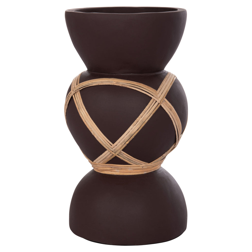 Ръчно изработената декоративна подова ваза MAYNARD е красив декоративен елемент за всяко пространство. Изработен е изцяло от Фиброцимент в цвят ШОКОЛАД с декорация от естествен ратан. Идеален за множество приложения и пространства. РАЗМЕРИ: Φ27.5x50H см. СТРОИТЕЛНИ МАТЕРИАЛИ: Фиброциментът е композитен строителен материал, произведен от цимент, подсилен с целулозни влакна. Известен е със своята издръжливост, устойчивост на гниене, вода и насекоми, което го прави избор с ниска поддръжка. Предимства: • Изисква минимална поддръжка и се почиства лесно. • Не е запалим. • Устойчивост на вода и атмосферни влияния: Устойчив на различни климатични условия. • Устойчивост на гниене и вредители. ПОДДРЪЖКА: Едно почистване с прах обикновено е достатъчно, но избягвайте използването на химически почистващи препарати. ** Цветопредаването на продукта може леко да се различава от неговото фотографско представяне на вашия екран.