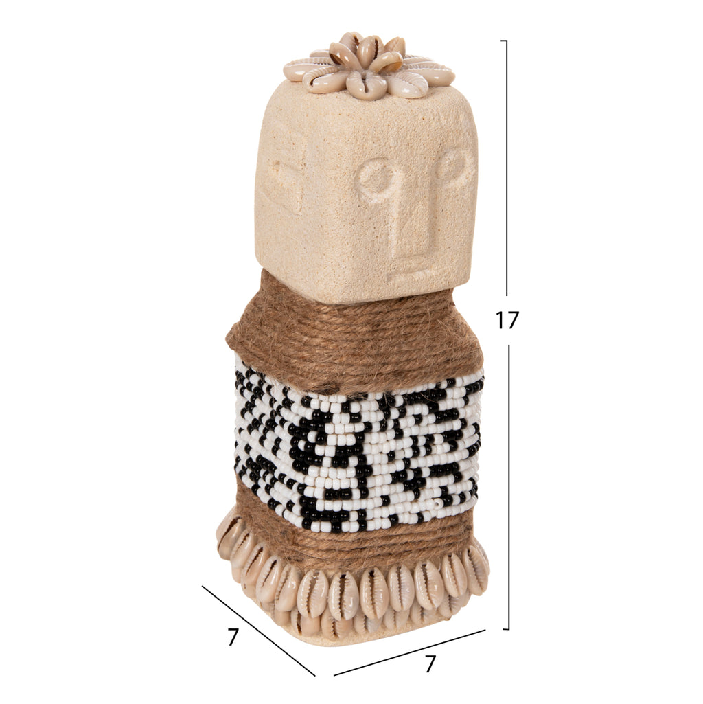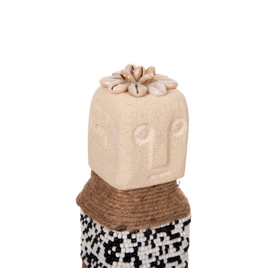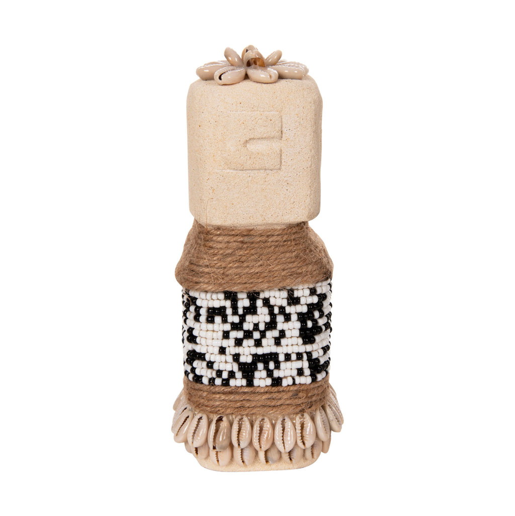 Декорацията за маса SUMBA ще придаде още една "аура" на вашето пространство. Представлява дълга и тясна статуетка в полинезийски стил (форма Моаи), в БЯЛ цвят, украсена с мъниста и въже от морска трева. Но това, което отличава MH4309, е неговата семиология. Изработена е от PARAS STONE, което на гръцки се превежда като "камък на късмета" и се казва, че носи късмет на притежателя си. Произлиза от индийската митология, в която КАМЪКЪТ ПАРАС е имал способността да превръща всеки предмет в злато. РАЗМЕРИ: 7x7x17Y см. ПОДДРЪЖКА: Обикновено е достатъчно да почистите тази декорация от прах. Ако искате, можете да го избършете с влажна кърпа, но избягвайте използването на химически почистващи препарати. ПРЕДИМСТВА: Тази декорация може да се побере навсякъде, където пожелаете. Или у дома, или в бизнес помещения.