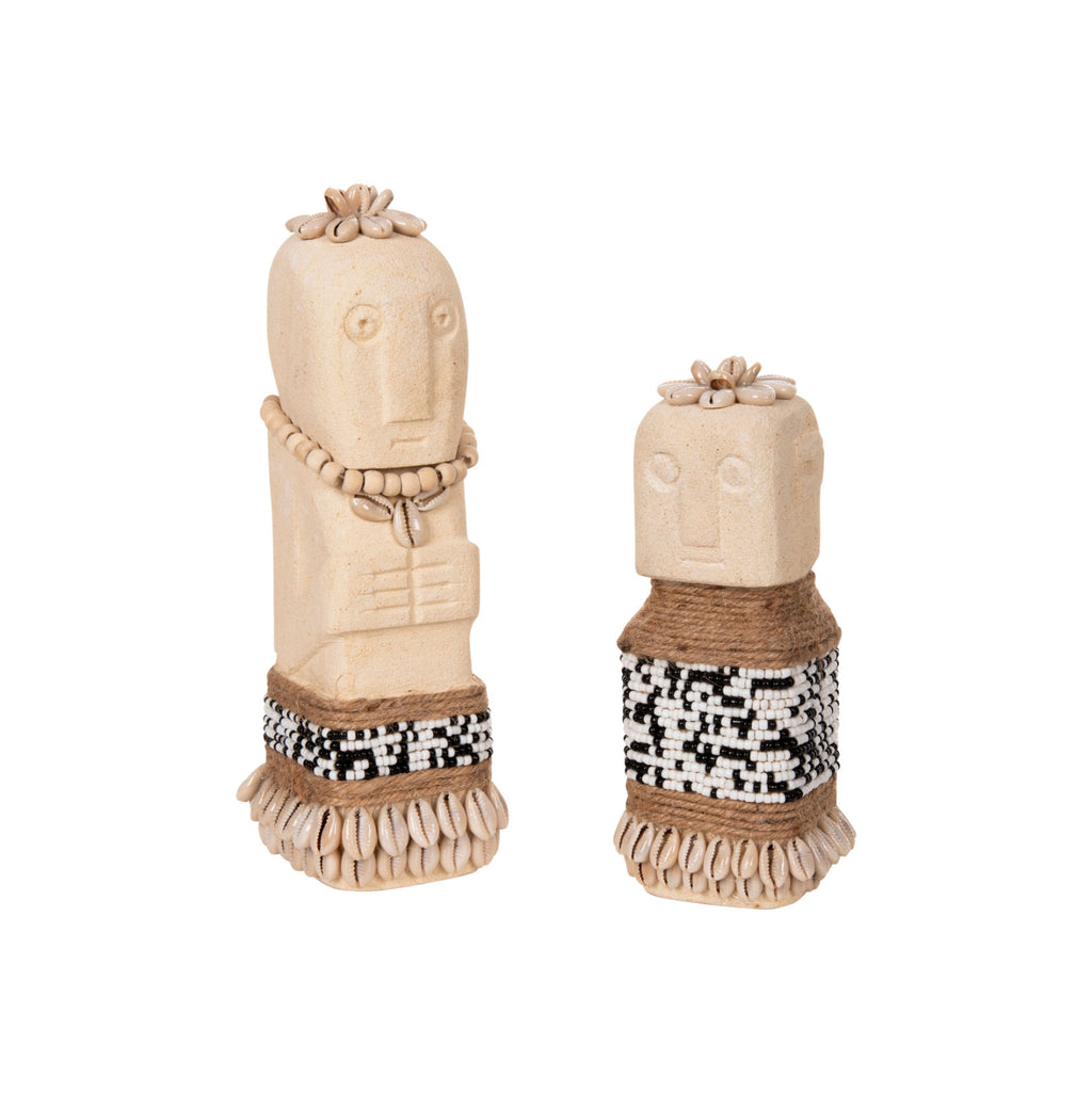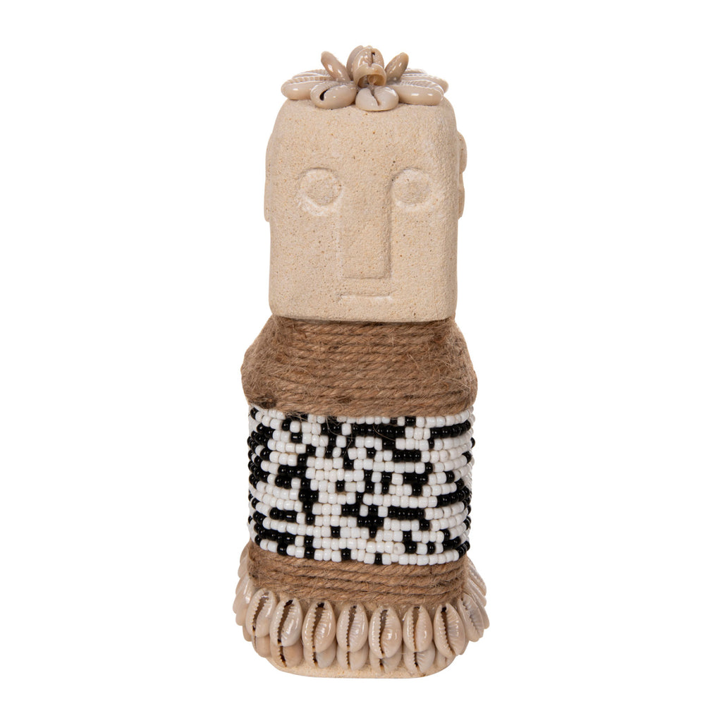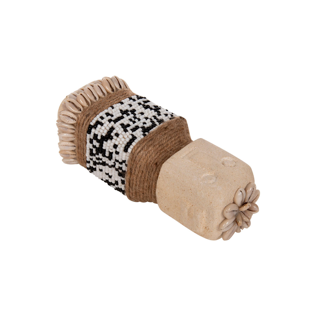 Декорацията за маса SUMBA ще придаде още една "аура" на вашето пространство. Представлява дълга и тясна статуетка в полинезийски стил (форма Моаи), в БЯЛ цвят, украсена с мъниста и въже от морска трева. Но това, което отличава MH4309, е неговата семиология. Изработена е от PARAS STONE, което на гръцки се превежда като "камък на късмета" и се казва, че носи късмет на притежателя си. Произлиза от индийската митология, в която КАМЪКЪТ ПАРАС е имал способността да превръща всеки предмет в злато. РАЗМЕРИ: 7x7x17Y см. ПОДДРЪЖКА: Обикновено е достатъчно да почистите тази декорация от прах. Ако искате, можете да го избършете с влажна кърпа, но избягвайте използването на химически почистващи препарати. ПРЕДИМСТВА: Тази декорация може да се побере навсякъде, където пожелаете. Или у дома, или в бизнес помещения.