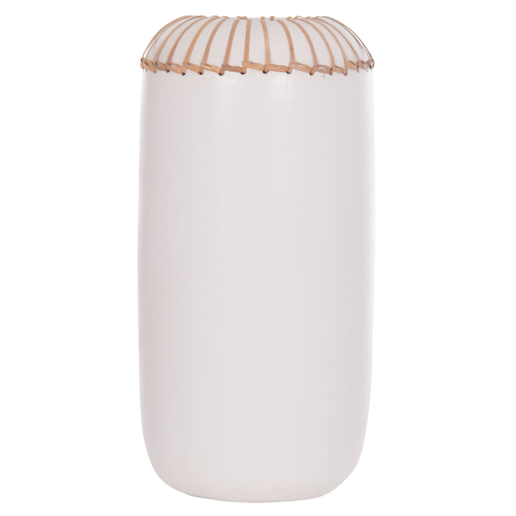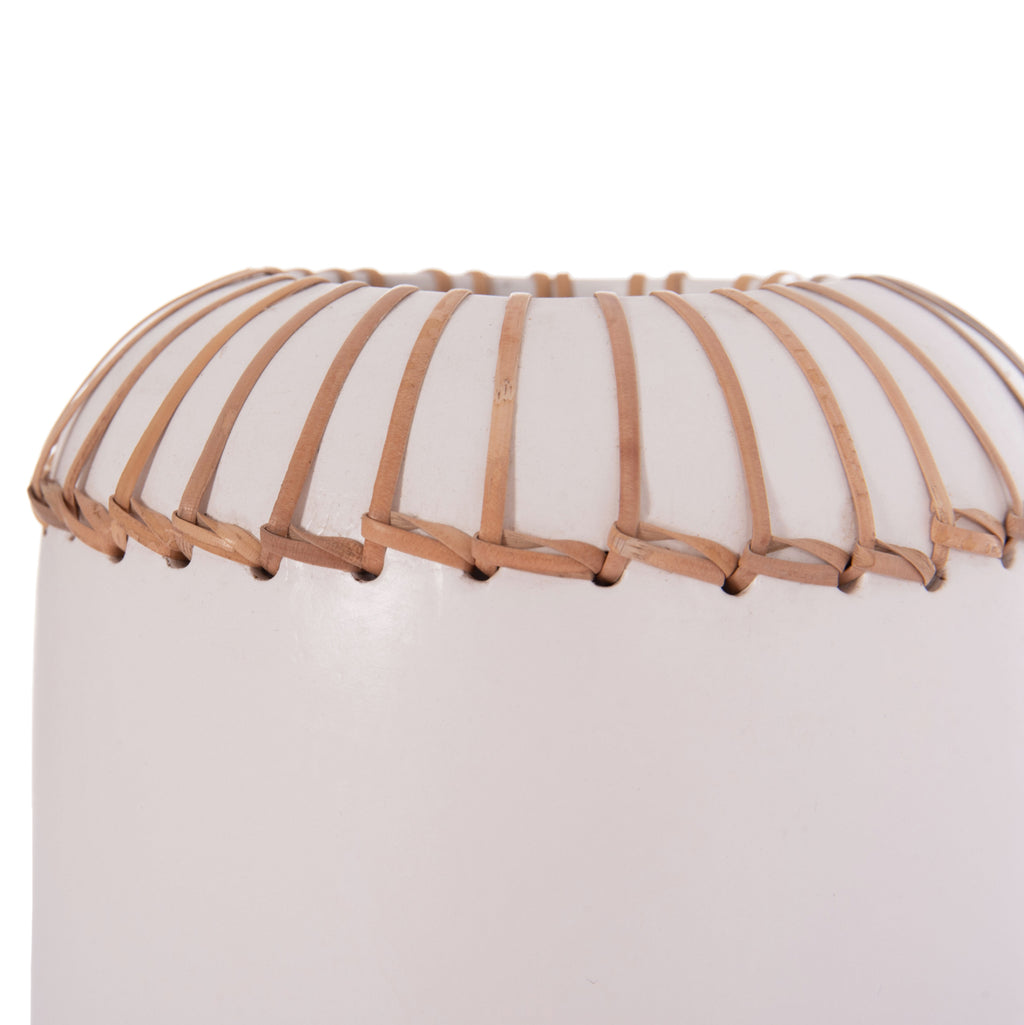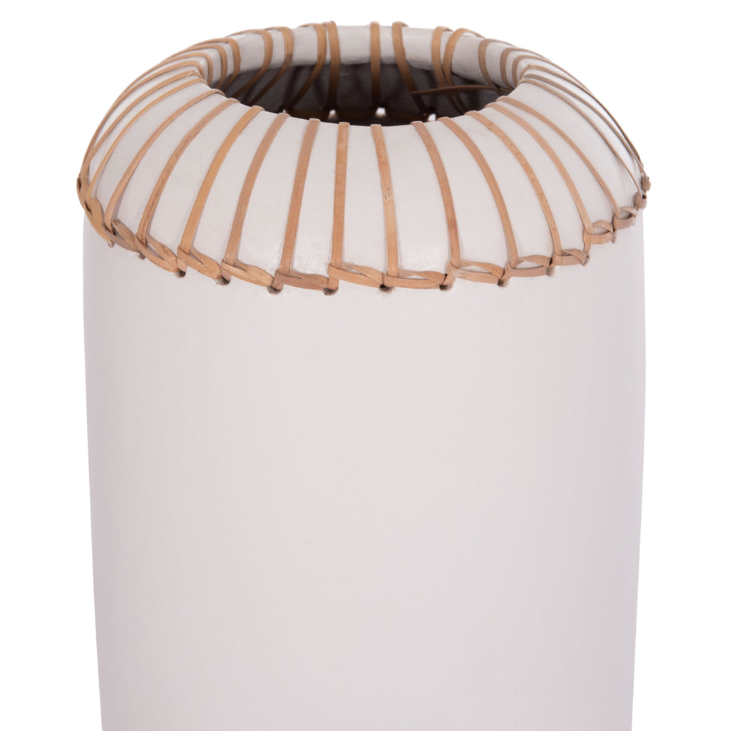 Ръчно изработената настолна декоративна ваза LENNOX е красив декоративен елемент за всяко пространство. Изработена е изцяло от теракота в БЯЛ цвят, а отворът е декориран с плетка от естествен ратан. Идеален за множество приложения и пространства. РАЗМЕРИ: Φ18x33H см. СТРОИТЕЛНИ МАТЕРИАЛИ: Основният строителен материал е теракот. Теракотата е керамичен материал. Името му идва от латински и означава "видима почва" (terra = почва, пръст и cotta = видима, изпечена). Затова, когато казваме, че нещо е направено от теракот, имаме предвид, че е направено от глина. ПОДДРЪЖКА: Едно почистване с прах обикновено е достатъчно, но избягвайте използването на химически почистващи препарати. ** Цветопредаването на продукта може леко да се различава от неговото фотографско представяне на вашия екран.