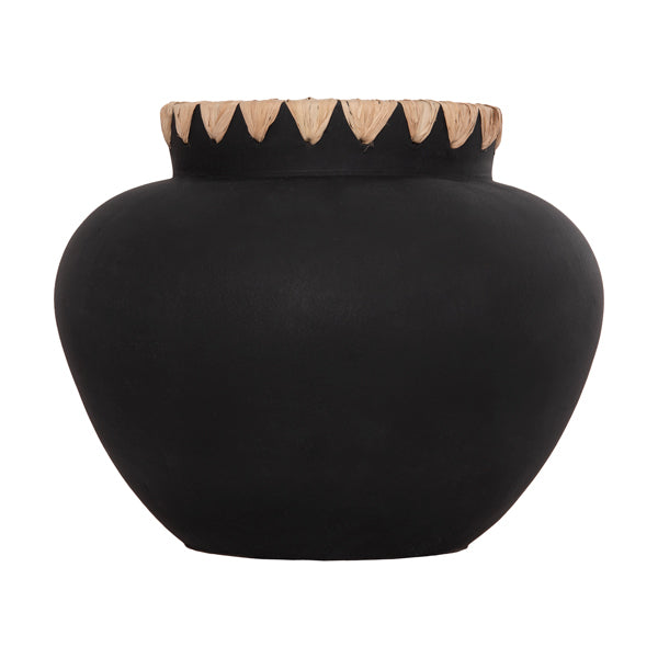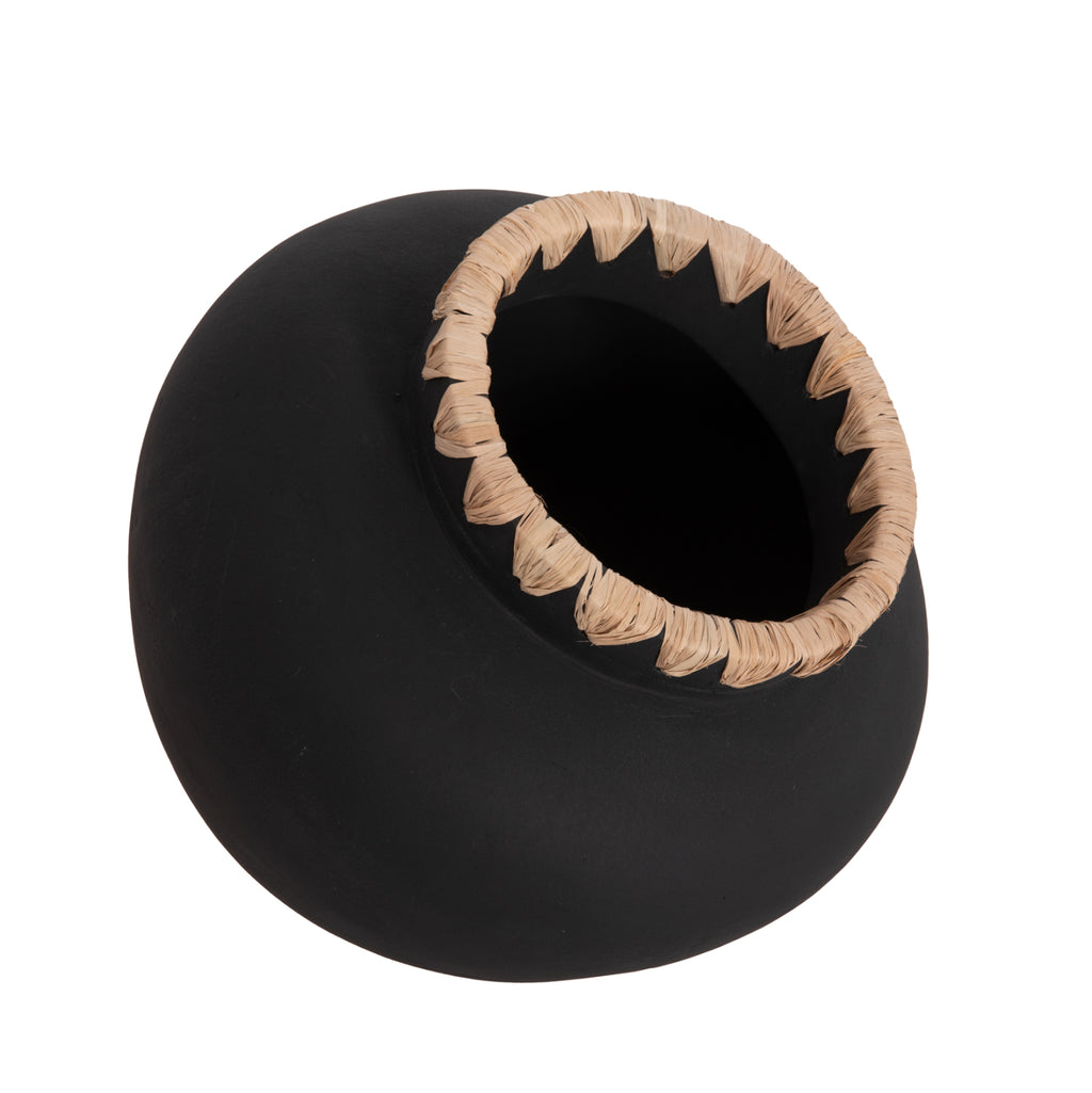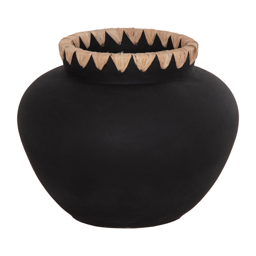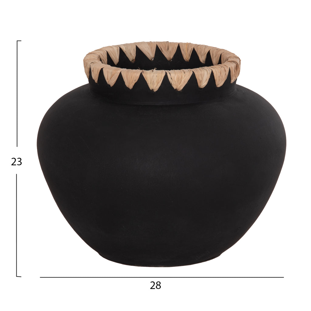 Декоративната ваза RENTON(M) е широка с голямо гърло с тъкана подложка. Той е в ЧЕРЕН нюанс и може да се съчетае навсякъде, където пожелаете. Или у дома, или в бизнес помещения. РАЗМЕРИ: Φ28x23H см. Устие: Φ18,5 см. СТРОИТЕЛНИ МАТЕРИАЛИ: Строителният материал е теракот. Теракотата е керамичен материал. Името му идва от латински и означава "видима почва" (terra = почва, пръст и cotta = видима, изпечена). Затова, когато казваме, че нещо е направено от теракот, имаме предвид, че е направено от глина. ПОДДРЪЖКА: Едно почистване с прах обикновено е достатъчно. Ако искате, можете да го измиете с вода, но избягвайте използването на химически почистващи препарати. ** Цветопредаването на продукта може леко да се различава от неговото фотографско представяне на вашия екран.