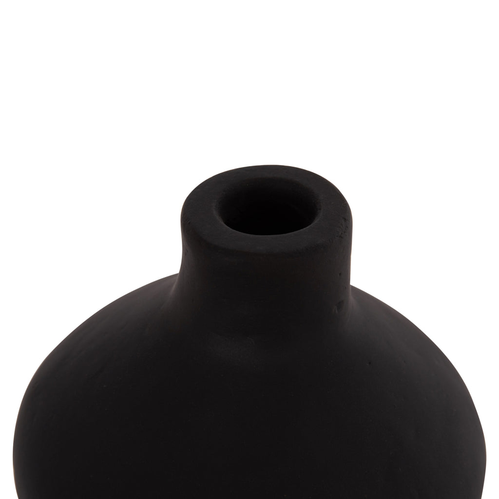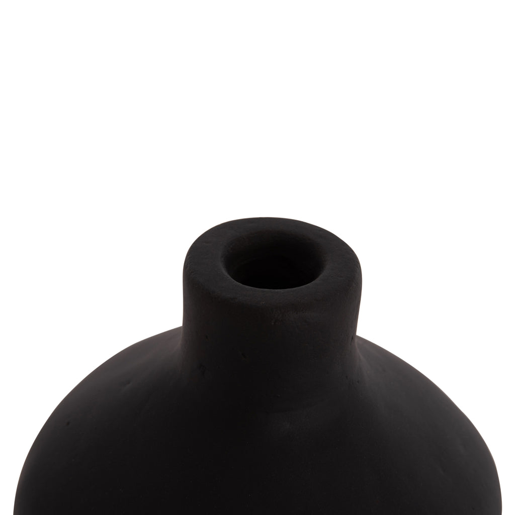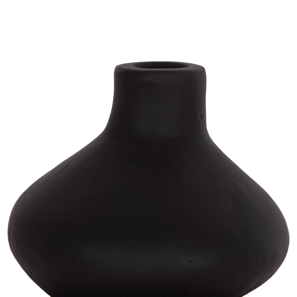 Настолната ръчно изработена декоративна ваза CHELIN има красива форма с извивки и малко гърло. Изработен е изцяло от теракота в ЧЕРЕН цвят. Идеален за различни пространства, както за дома, така и за професионални пространства. РАЗМЕРИ: Φ20x25Hcm. Устие: Φ2,5 см. СТРОИТЕЛНИ МАТЕРИАЛИ: Строителният материал е теракот. Теракотата е керамичен материал. Името му идва от латински и означава "видима почва" (terra = почва, пръст и cotta = видима, изпечена). Затова, когато казваме, че нещо е направено от теракот, имаме предвид, че е направено от глина. ПОДДРЪЖКА: Едно почистване с прах обикновено е достатъчно, но избягвайте използването на химически почистващи препарати. ** Цветопредаването на продукта може леко да се различава от неговото фотографско представяне на вашия екран.