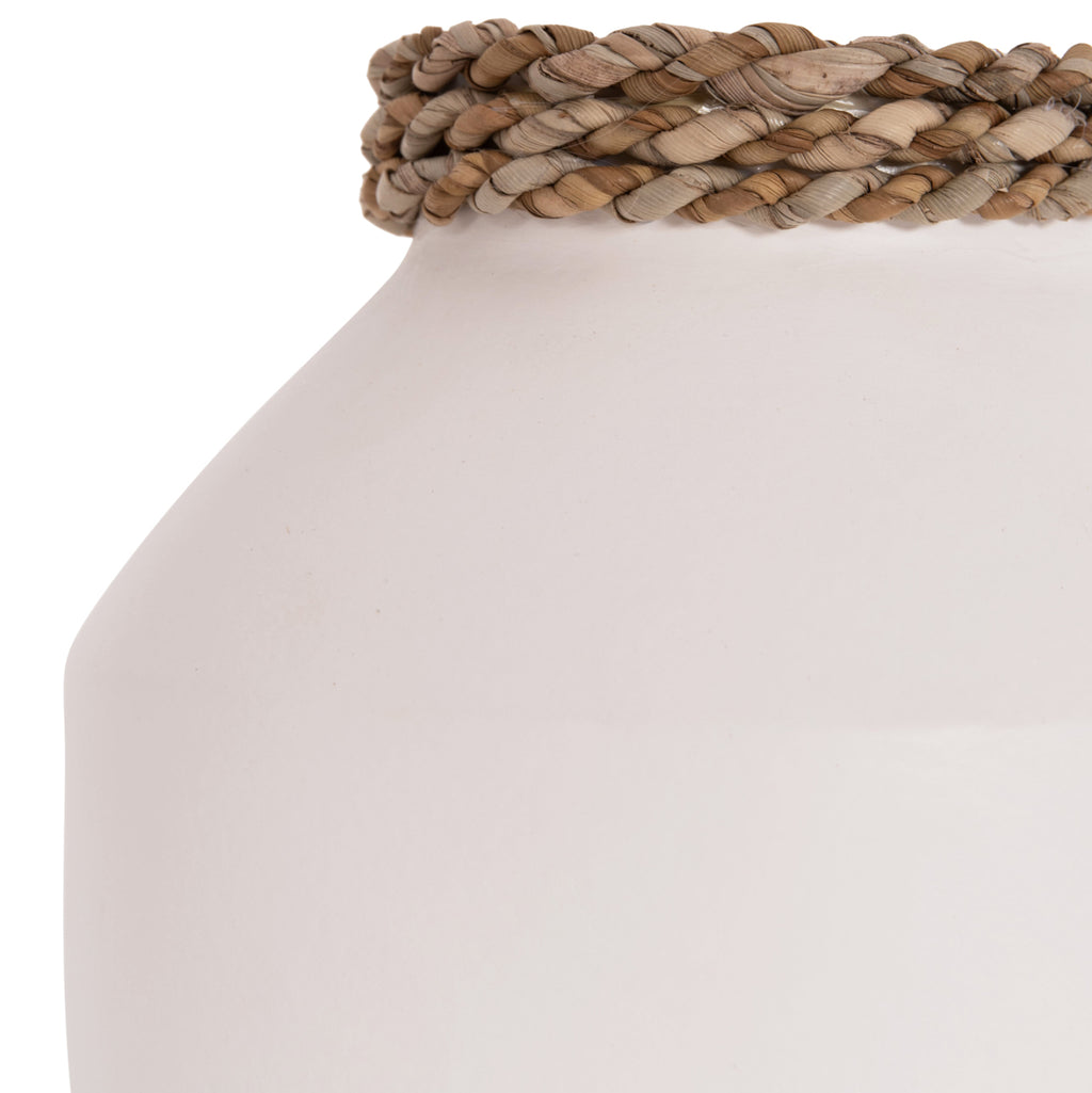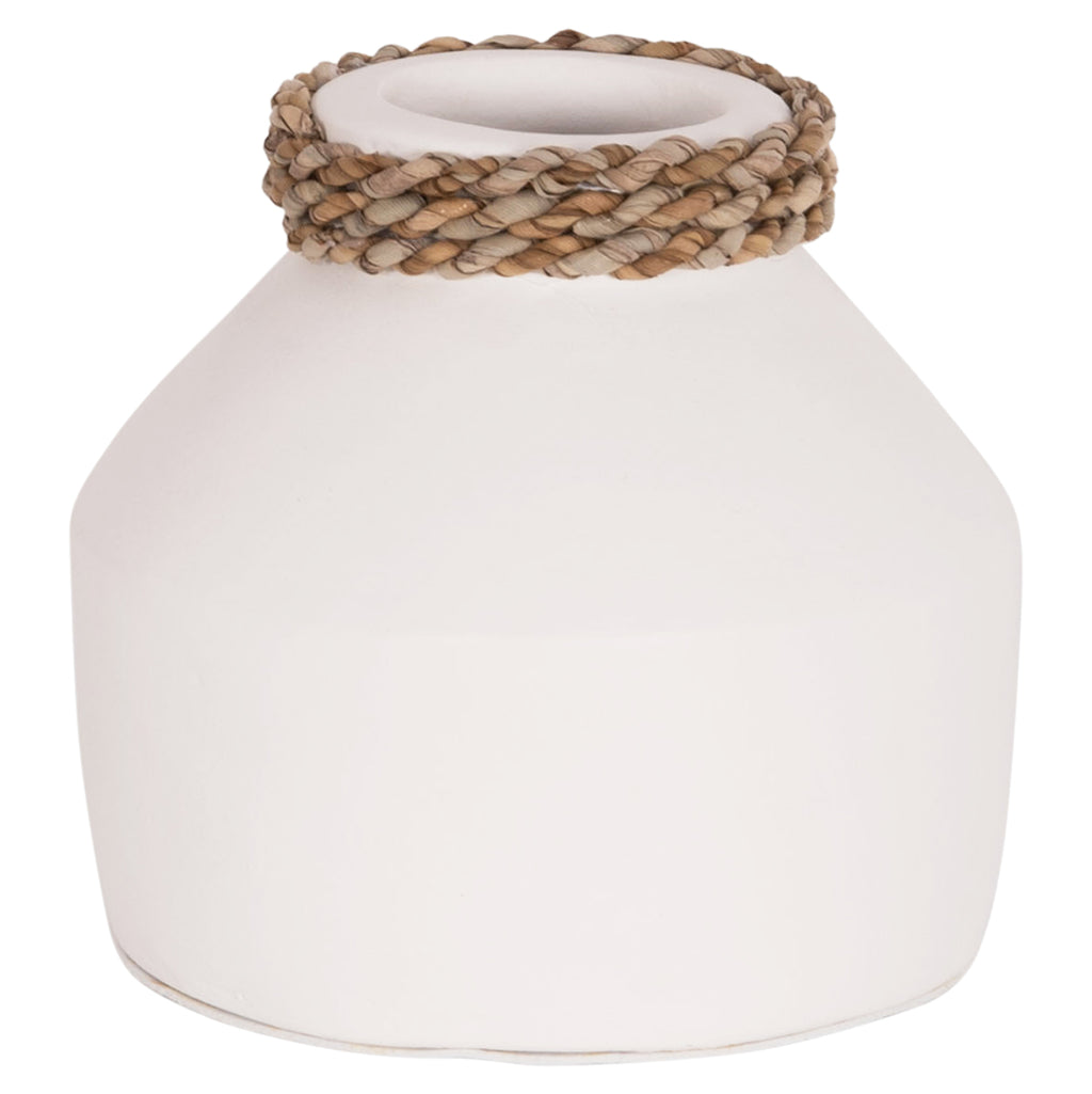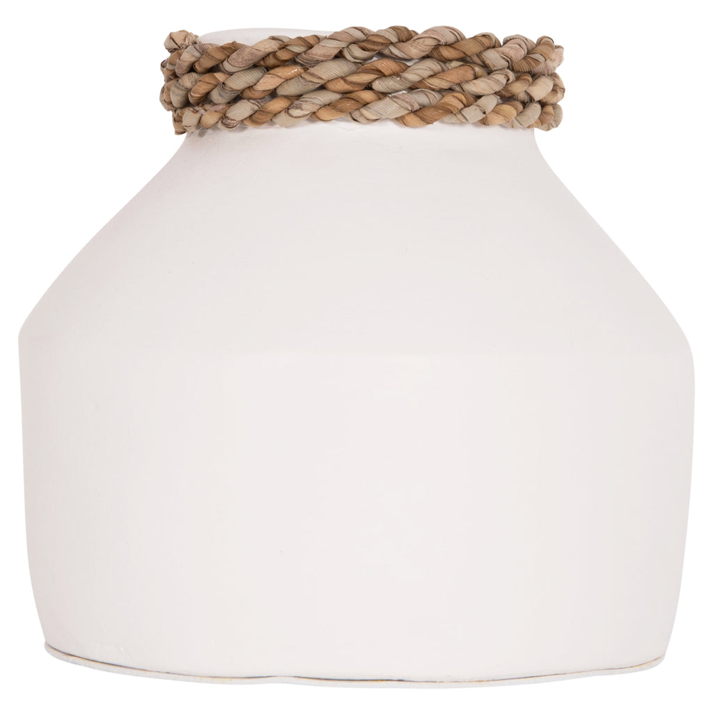 Настолната ръчно изработена декоративна ваза CAMMER е изработена изцяло от теракот в БЯЛ цвят и има декоративна ратанова плетка около "гърлото" на вазата. Идеален за различни пространства, както за дома, така и за професионални пространства. РАЗМЕРИ: Φ16x15H см. Устие: Φ5 см. СТРОИТЕЛНИ МАТЕРИАЛИ: Строителният материал е теракот. Теракотата е керамичен материал. Името му идва от латински и означава "видима почва" (terra = почва, пръст и cotta = видима, изпечена). Затова, когато казваме, че нещо е направено от теракот, имаме предвид, че е направено от глина. ПОДДРЪЖКА: Едно почистване с прах обикновено е достатъчно, но избягвайте използването на химически почистващи препарати. ** Цветопредаването на продукта може леко да се различава от неговото фотографско представяне на вашия екран.