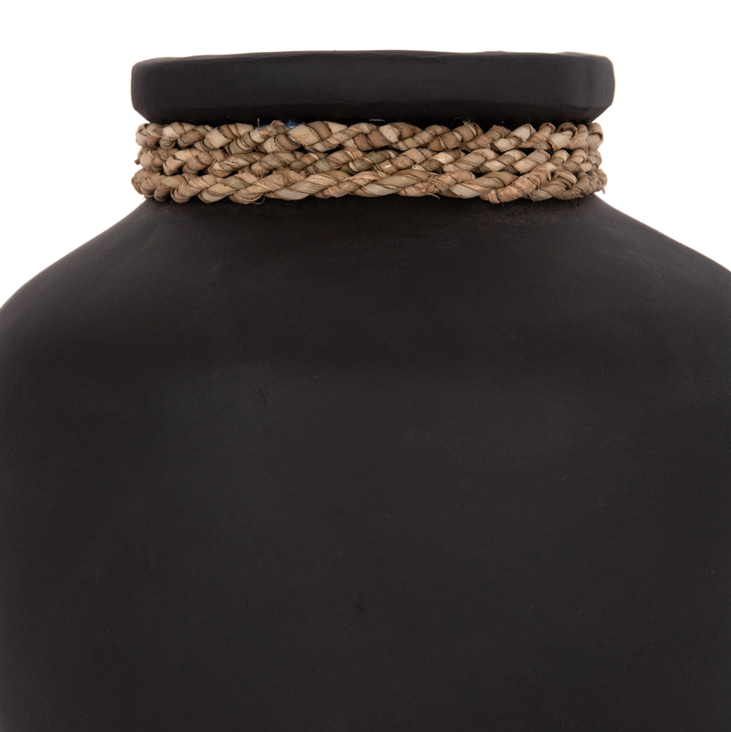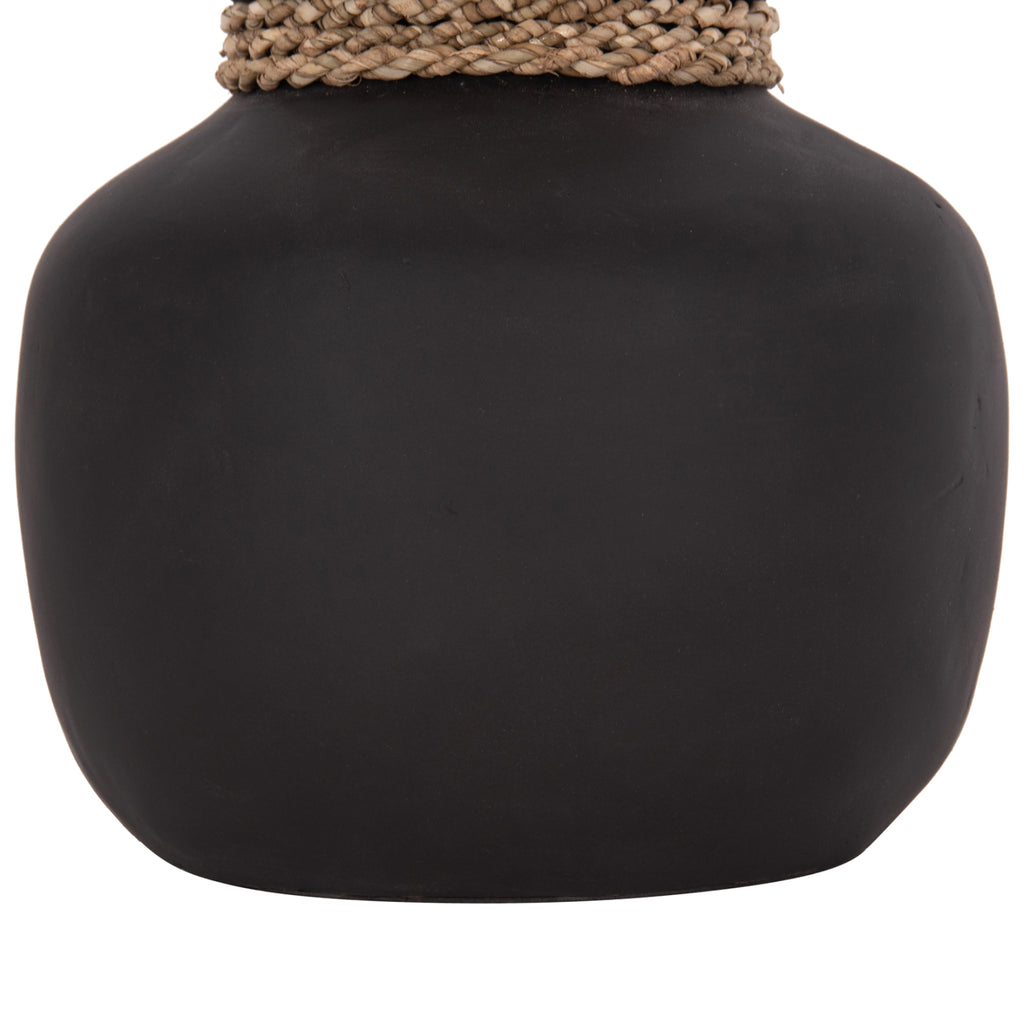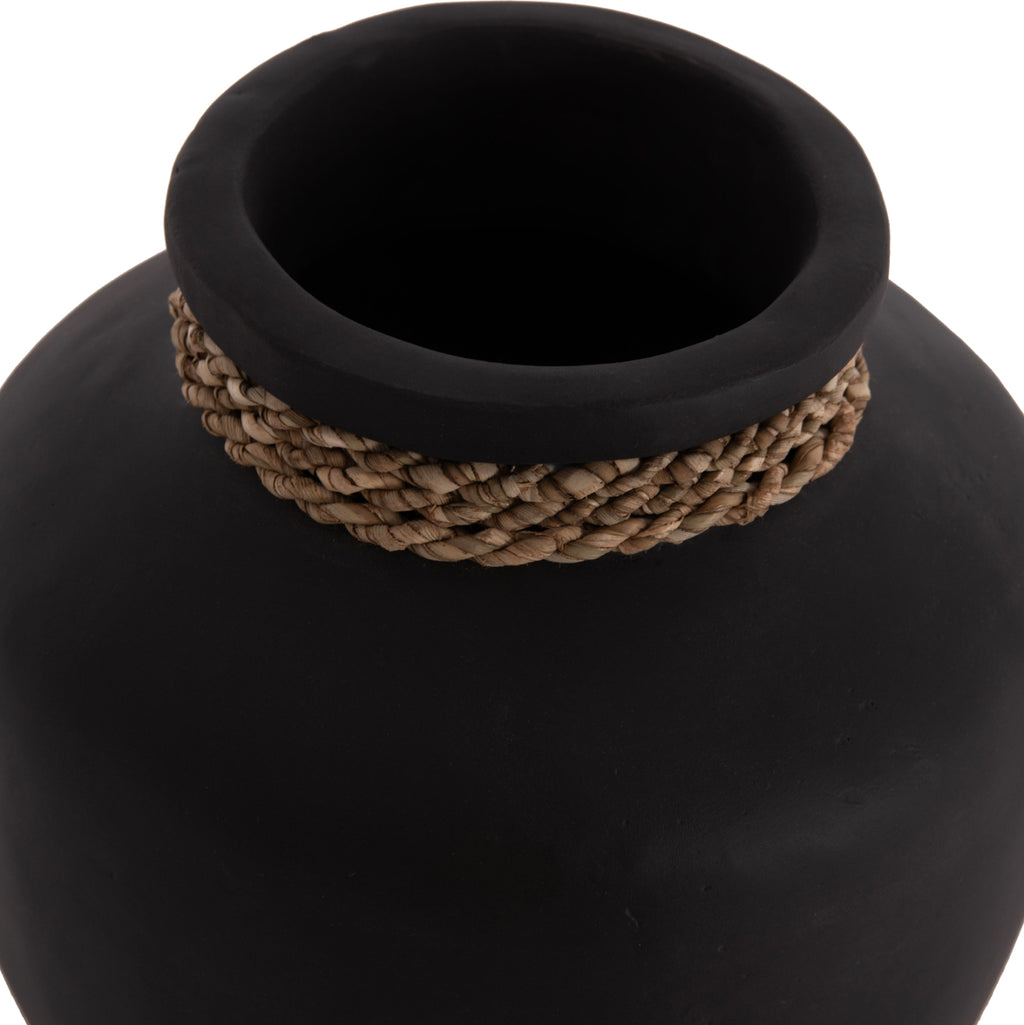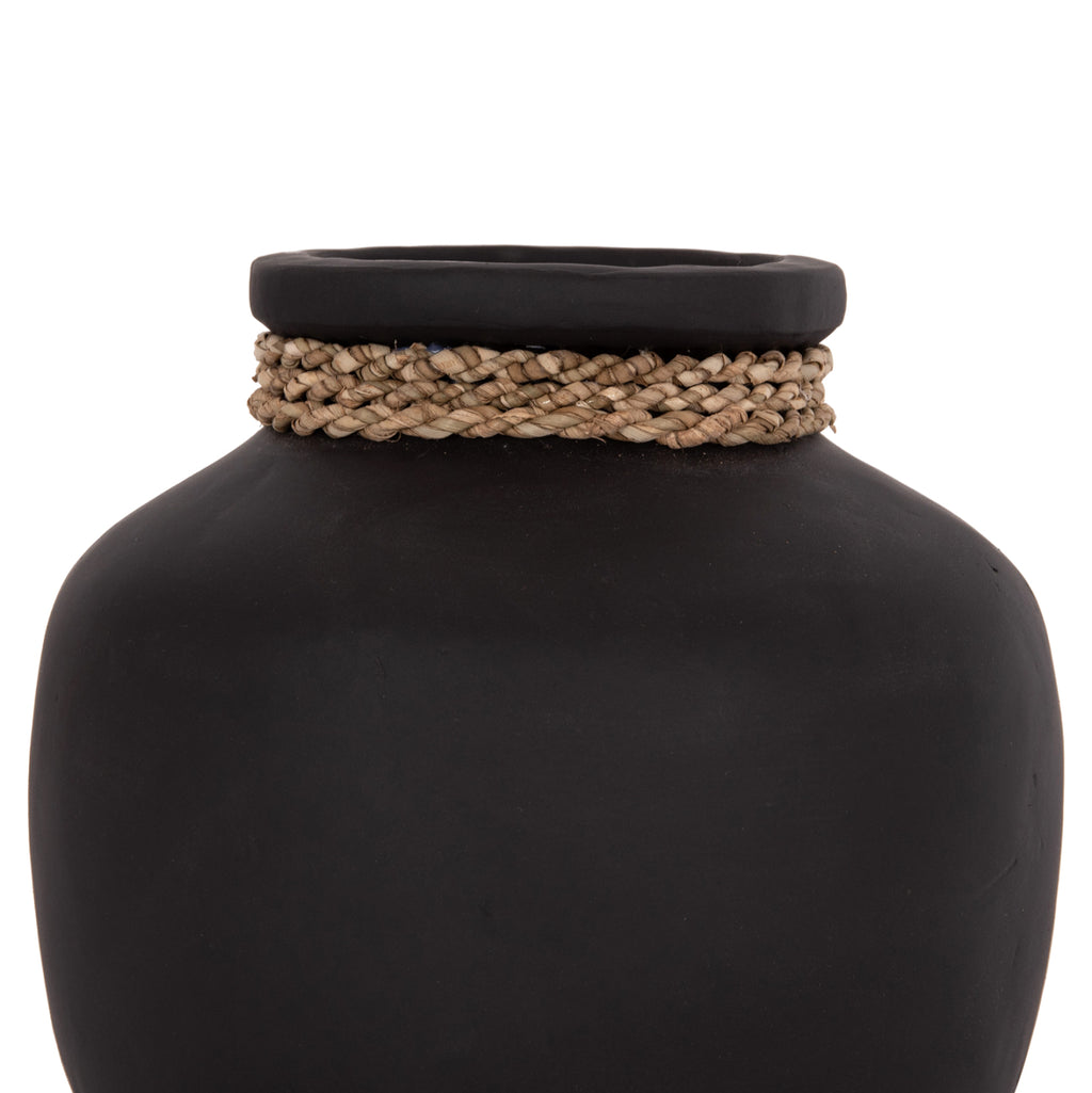 Настолната ръчно изработена декоративна ваза CAMMER е изработена изцяло от теракота в ЧЕРЕН цвят, като около "гърлото" на вазата има декоративна ратанова плетка. Идеален за различни пространства, както за дома, така и за професионални пространства. РАЗМЕРИ: Φ22x20H см. Устие: Φ9 см. СТРОИТЕЛНИ МАТЕРИАЛИ: Строителният материал е теракот. Теракотата е керамичен материал. Името му идва от латински и означава "видима почва" (terra = почва, пръст и cotta = видима, изпечена). Затова, когато казваме, че нещо е направено от теракот, имаме предвид, че е направено от глина. ПОДДРЪЖКА: Едно почистване с прах обикновено е достатъчно, но избягвайте използването на химически почистващи препарати. ** Цветопредаването на продукта може леко да се различава от неговото фотографско представяне на вашия екран.