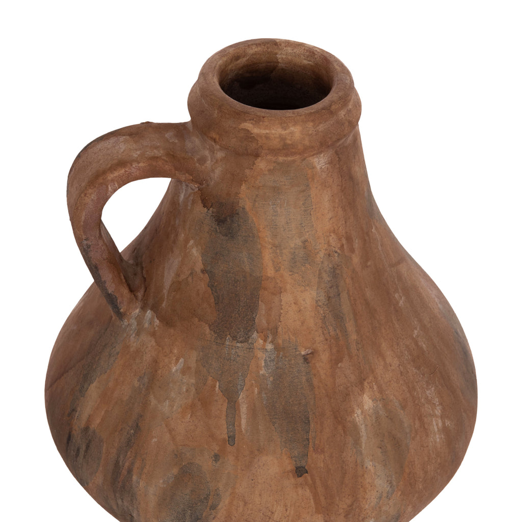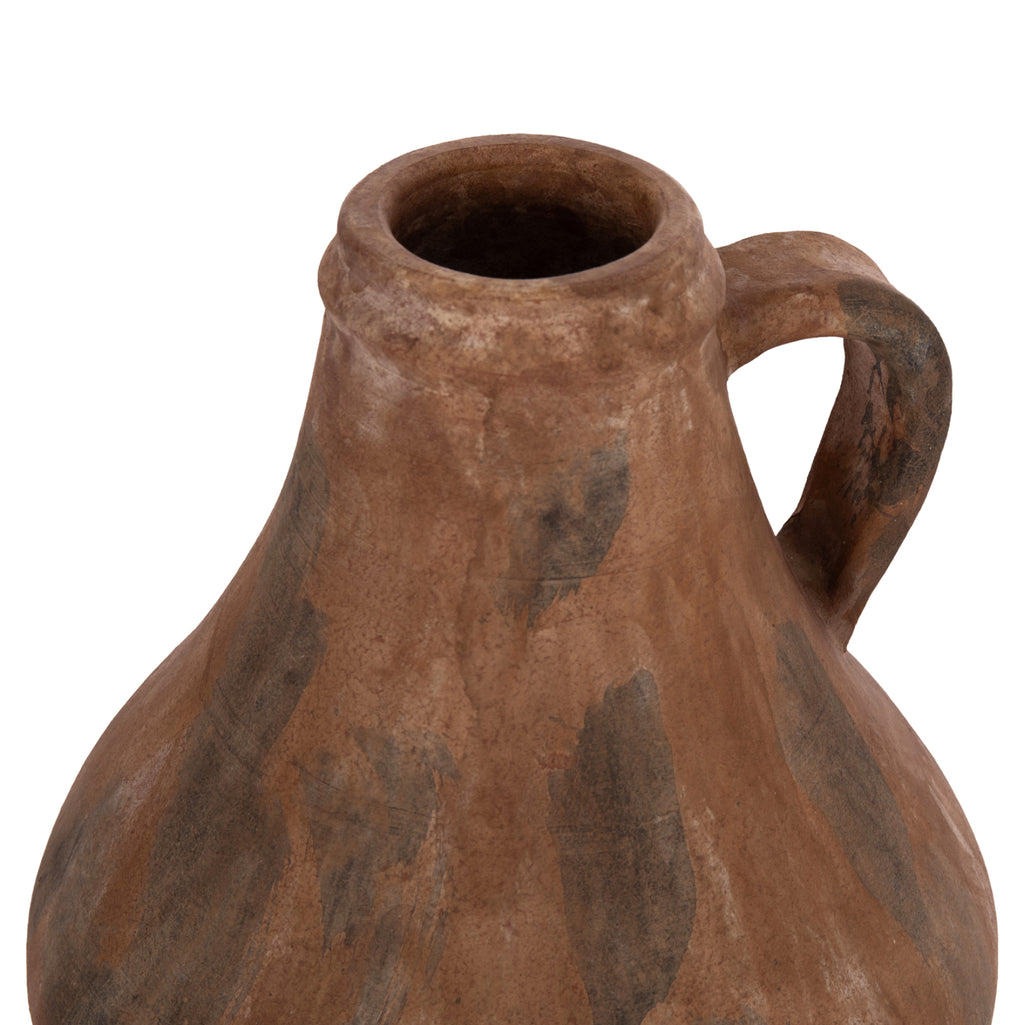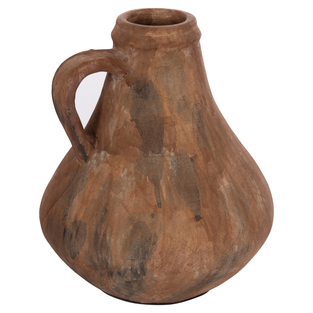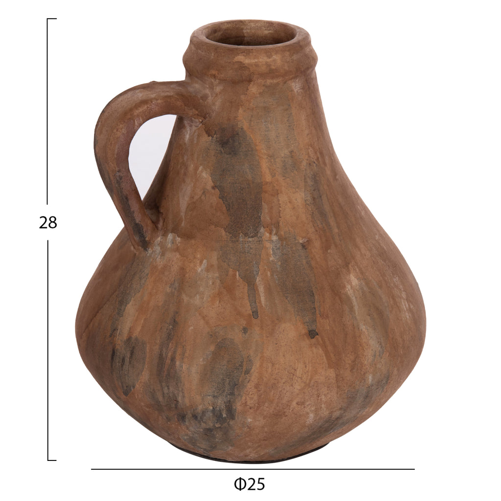 Декоративната ваза VERMO е сравнително ниска и широка със средно гърло и също има дръжка. Той е в състарен (четкан) КАФЯВ цвят и може да се побере навсякъде, където пожелаете. Или у дома, или в бизнес помещения. РАЗМЕРИ: Φ25x28H см. СТРОИТЕЛНИ МАТЕРИАЛИ: Строителният материал е теракот. Теракотата е керамичен материал. Името му идва от латински и означава "видима почва" (terra = почва, пръст и cotta = видима, изпечена). Затова, когато казваме, че нещо е направено от теракот, имаме предвид, че е направено от глина. ПОДДРЪЖКА: Едно почистване с прах обикновено е достатъчно. Ако искате, можете да го измиете с вода, но избягвайте използването на химически почистващи препарати. ** Цветопредаването на продукта може леко да се различава от неговото фотографско представяне на вашия екран.