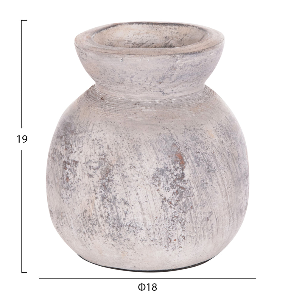 Декоративната ваза VERMO е сравнително ниска и широка с голямо гърло. Той е в СВЕТЛО СИВ цвят и може да го съчетаете където пожелаете. Или у дома, или в бизнес помещения. РАЗМЕРИ: Φ18x19H см. СТРОИТЕЛНИ МАТЕРИАЛИ: Строителният материал е теракот. Теракотата е керамичен материал. Името му идва от латински и означава "видима почва" (terra = почва, пръст и cotta = видима, изпечена). Затова, когато казваме, че нещо е направено от теракот, имаме предвид, че е направено от глина. ПОДДРЪЖКА: Едно почистване с прах обикновено е достатъчно. Ако искате, можете да го измиете с вода, но избягвайте използването на химически почистващи препарати. ** Цветопредаването на продукта може леко да се различава от неговото фотографско представяне на вашия екран.