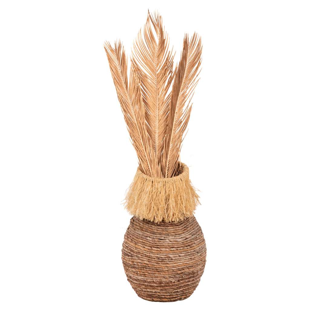 Открийте чисто новите декорации, добавени към нашия каталог. Това са изсушени растения, идеални за декориране с висока степен на правдоподобност, всяко ВЪТРЕШНО професионално или лично пространство. ТЕХНИЧЕСКИ ДАННИ: Код: КГ7958 Тип растение: ПАЛМОВИ ЛИСТА - изсушени Разположение: Комплект от 3 цвята: златист Размери: 110H cm *Без UV защита ** Грижете се за продукта като за истинско растение ***BSCI сертификат за подобрени условия на работа на ниво международна търговия