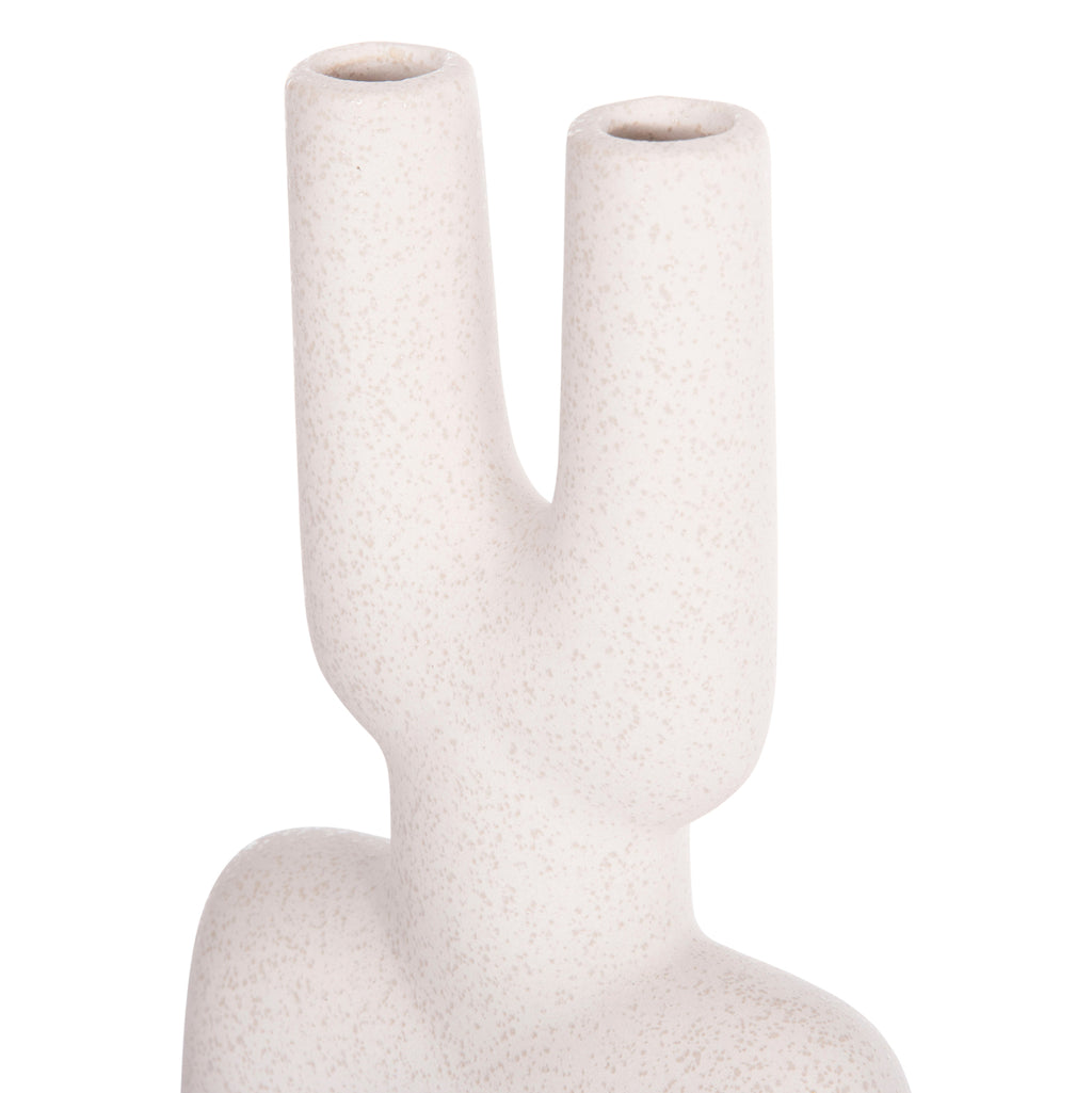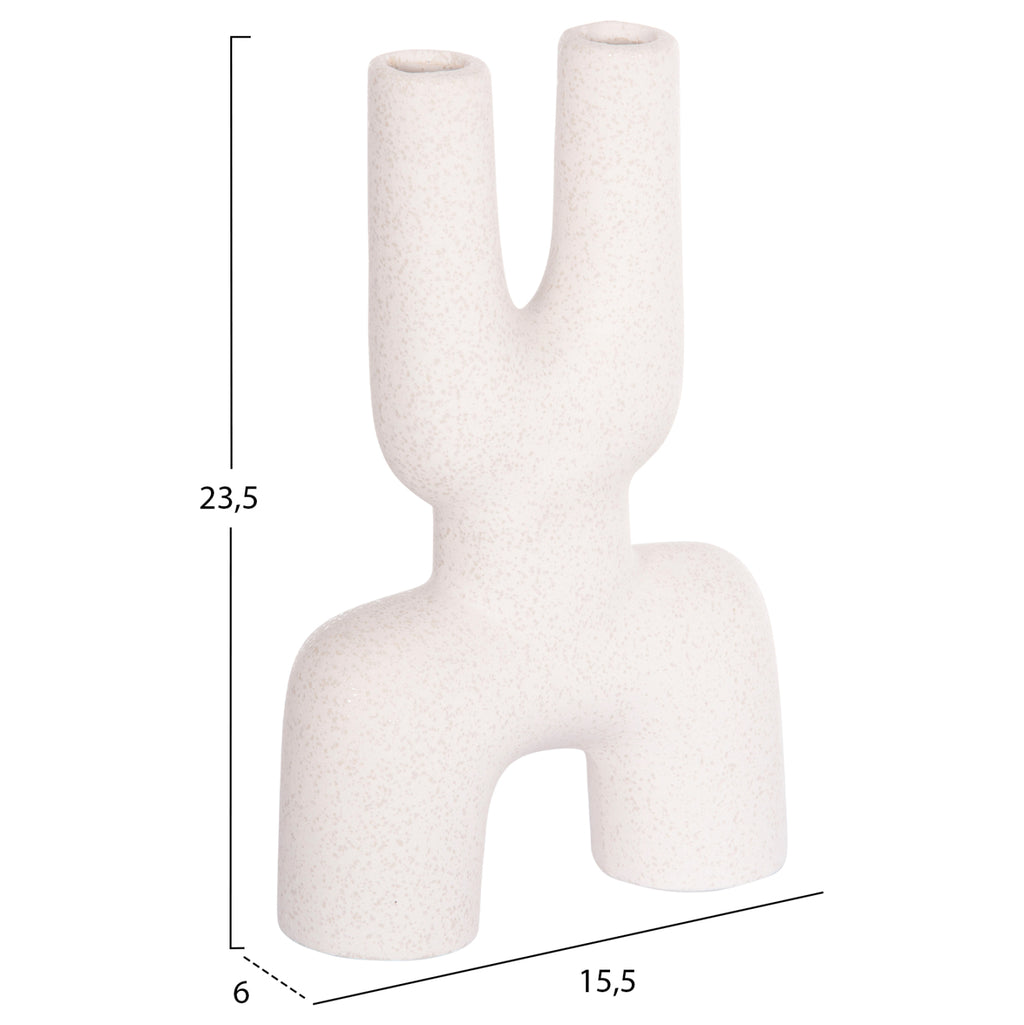КГ4642.01 принадлежи към нашата нова серия декорации за маса "MANI". Това БЕЗБЯЛО парче с форма на ваза с 2 гърла е изработено от керамичен материал със специална обработка на кристализация, която придава вида и текстурата на кристал на керамичните предмети. РАЗМЕРИ: 15.5x6x23.5Y см. КОНСТРУКТИВЕН МАТЕРИАЛ: Керамичният материал е направен чрез нагряване и охлаждане на естествена глина, което води до твърда и устойчива на топлина и надраскване повърхност. ПОДДРЪЖКА: Обикновено е достатъчно да почистите тази декорация от прах. Ако искате, можете да го избършете с влажна кърпа, но избягвайте използването на химически почистващи препарати. * Цветопредаването на продукта може леко да се различава от неговото фотографско представяне на вашия екран.