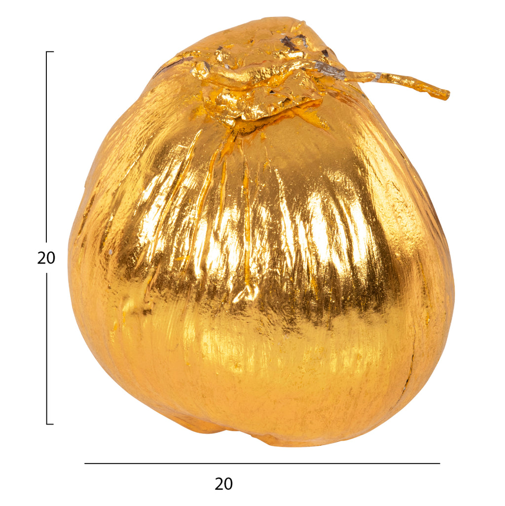 Искате ли да се откроите, като поставите нещо уникално във вашето пространство? Не се колебайте да украсите вашата маса или конзола с красива и уникална естествена декорация. ΜΜ4326.03 е цял кокосов орех в ЗЛАТЕН цвят, полиран и подходящо обработен за целта. Той ще осигури фокусна точка във вашата всекидневна или във всяко пространство, което искате да го поставите, професионално или не, привличайки погледите на посетителите и придавайки характер на пространството. РАЗМЕРИ: 20x20x20H см.---Размерите явно са ориентировъчни, тъй като всеки кокос си има размери. ПОДДРЪЖКА: Редовното почистване на прах ще запази вашата декорация като нова. ** Цветопредаването на продукта може леко да се различава от неговото фотографско представяне на вашия екран.