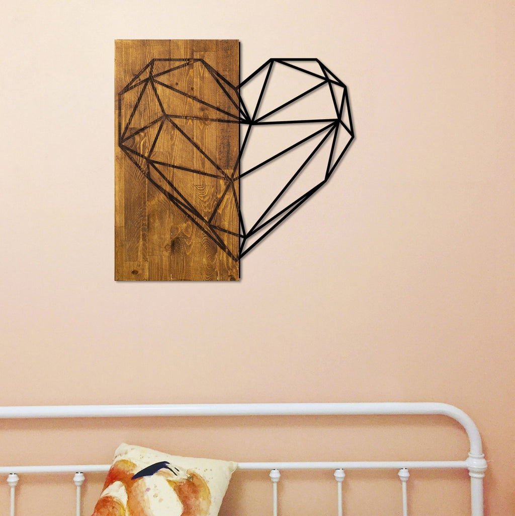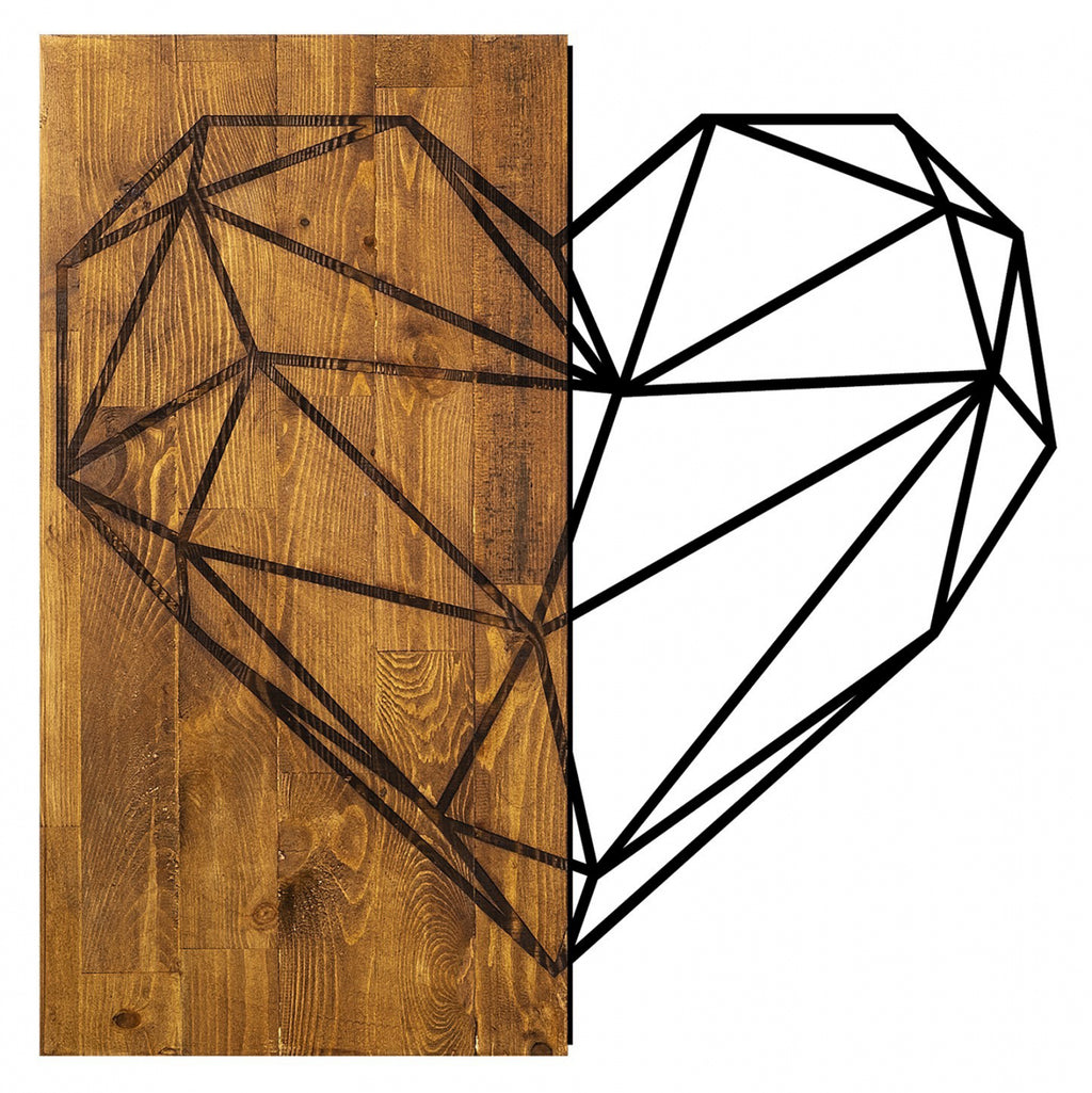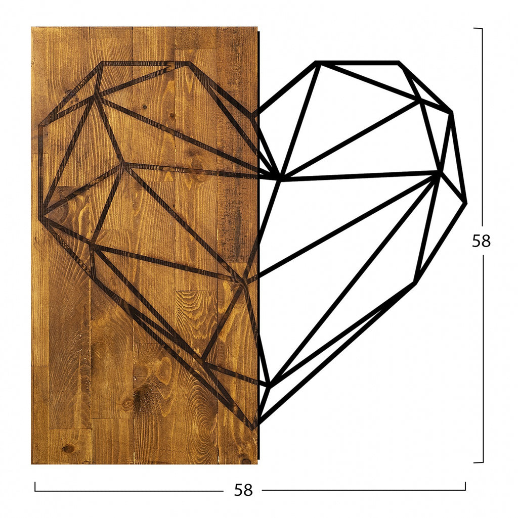 Декорацията на едно пространство е особено важна, тъй като тя "издава" нашата естетика и индивидуалност. Стенната декорация привлича вниманието на хората в стаята, така че трябва да включва стилни предмети. Тази специална конструкция, изработена от метал в комбинация с дърво, е идеалната декорация за стената на вашия дом или бизнес. Нейният дизайн е черно сърце, половината от което лежи върху дърво. Подходящ за всички части на дома или на работното място и брилянтна идея за подарък! Материал: Дърво и метал Цвят: Орех и черен Размери: 58х58 см. Дебелина: 3см. Европейско производство и произход. Продуктът се предлага във фабрична опаковка.