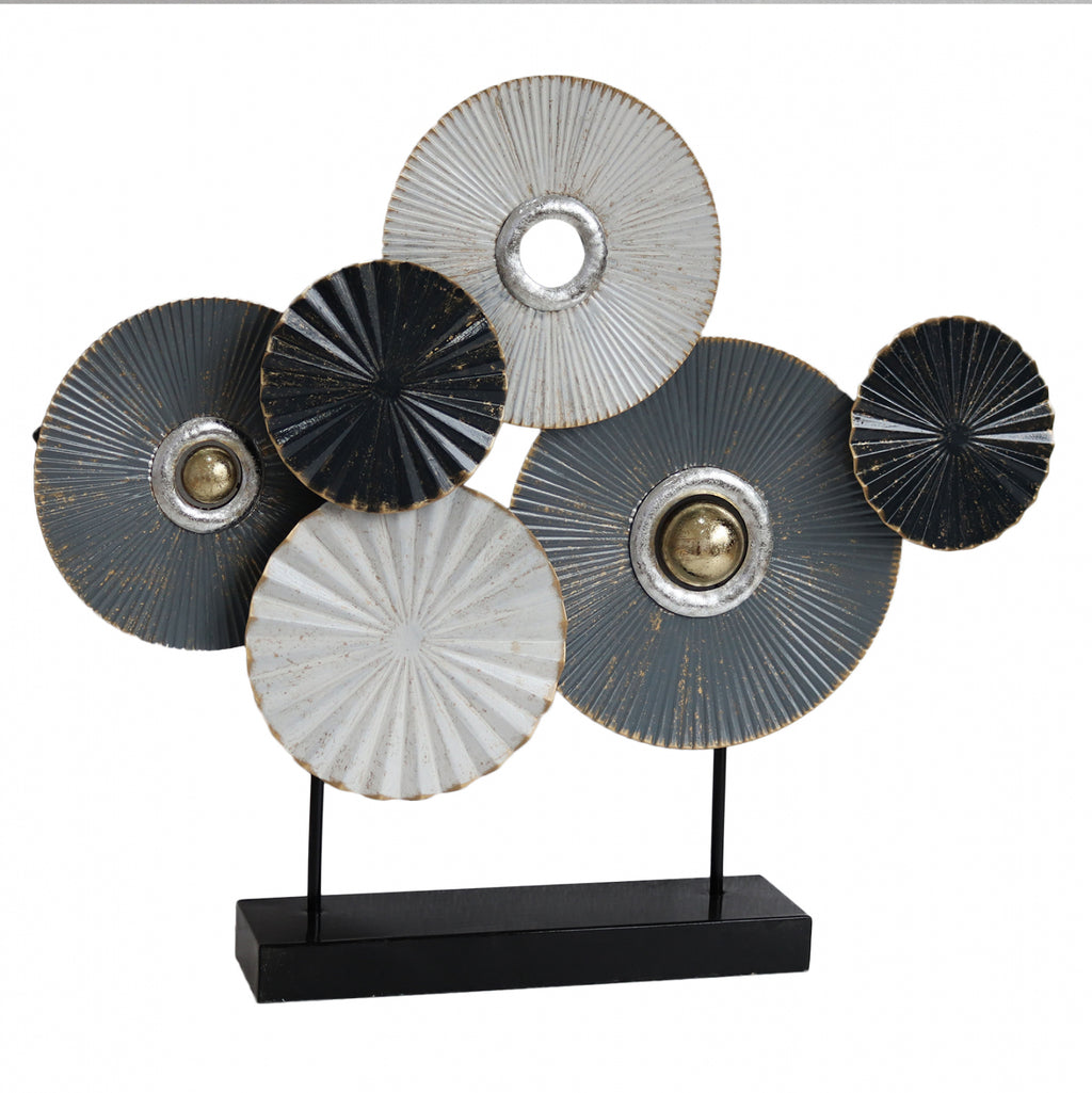 Метална декорация за маса в бели и сиви нюанси с детайли от сребристи и златни акценти и черна основа. Придайте на пространството си модерния характер, който желаете, като изберете стилна декорация за маса. Прекрасно декоративно предложение, характеризиращо се с благородство и елегантност. Цвят: Черен, Бял, Антрацит, Злато, Сребро Размери: 65x9x54.5Y см. Продуктът се доставя във фабрична опаковка.