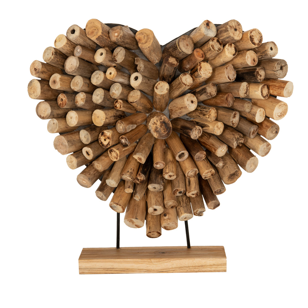 Декорацията за маса SHINZO ще придаде още един "облик" на вашето пространство. Дизайнът му във формата на сърце е уникален и интересен, като същевременно може да се съчетае с много декоративни шарки. Парчетата дърво, които оформят сърцето, са в естествения си цвят, а размерите на цялата конструкция правят това парче внушително, където и да се постави. РАЗМЕРИ: 53x5x51H см. Основа: 30х10см. МАТЕРИАЛИ ЗА ИЗРАБОТКА: Декорацията е изработена от клони на ТИКОВО дърво. Тикът е най-популярният вид твърда дървесина. Той е жълт до тъмно кафяв на цвят, изключително тежък, с висока якост, устойчив на атмосферни влияния, устойчив на стружки и не се разлага. Често водите на дървото му са силни и прави. Използва се за различни вътрешни и външни конструкции. ПОДДРЪЖКА: Фактът, че ТИК е част от твърдата дървесина, го прави много лесен за поддръжка. Всичко, от което се нуждае, е почистване от прах и при необходимост почистване с влажна кърпа. ПРЕДИМСТВА: Тази декорация може да се побере навсякъде, където пожелаете. Или у дома, или в бизнес помещения.