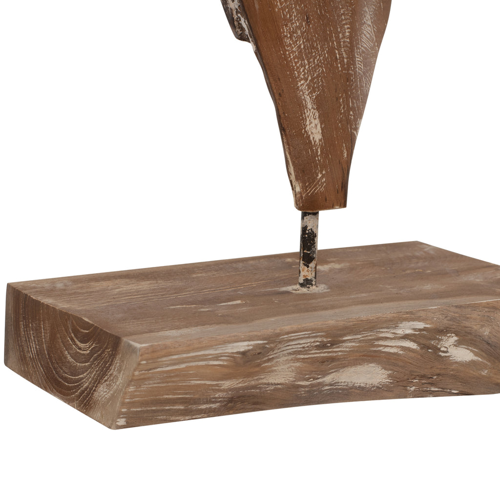 Декорацията за маса Μ7715 ще придаде още един "облик" на вашето пространство. Дизайнът му е уникален и интересен, като същевременно може да се съчетае с много декоративни шарки. Красиво полираното и оцветено парче дърво, което съставлява гарнитурата, е в цвят липа, а размерите на цялата конструкция правят това парче внушително, където и да се постави. РАЗМЕРИ: 41.5X15X63H см. РАЗМЕРИ НА ОСНОВАТА 26X16X4.5 **Размерите може да варират поради ръчно изработена конструкция. Всички пукнатини в дървото се дължат на естественото състояние на дървото и не са дефект на продукта. МАТЕРИАЛИ НА ИЗРАБОТКА: Декорацията е от масивно тиково дърво. Когато говорим за масивно дърво, имаме предвид дървета, направени изцяло от ствола на дърво. Масивната дървесина е най-скъпият избор по отношение на дървесината, но се откроява със своята вечна естетика. Тикът е най-популярният вид твърда дървесина. Той е жълт до тъмно кафяв на цвят, изключително тежък, с висока якост, устойчив на атмосферни влияния, устойчив на стружки и не се разлага. Често водите на дървото му са силни и прави. Използва се за много интериорни конструкции. ПОДДРЪЖКА: Фактът, че ТИК е част от твърдата дървесина, го прави много лесен за поддръжка. Всичко, от което се нуждае, е почистване от прах и при необходимост почистване с влажна кърпа. ПРЕДИМСТВА: Тази декорация може да се побере навсякъде, където пожелаете. Независимо дали у дома или в бизнес помещения, неговият специален цвят ще привлече вниманието и ще се превърне във фокусна точка.
