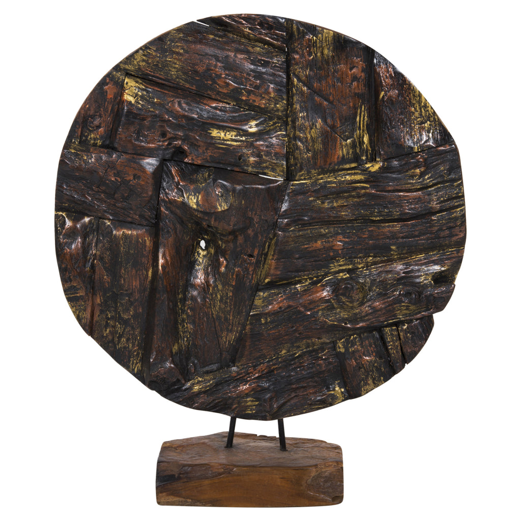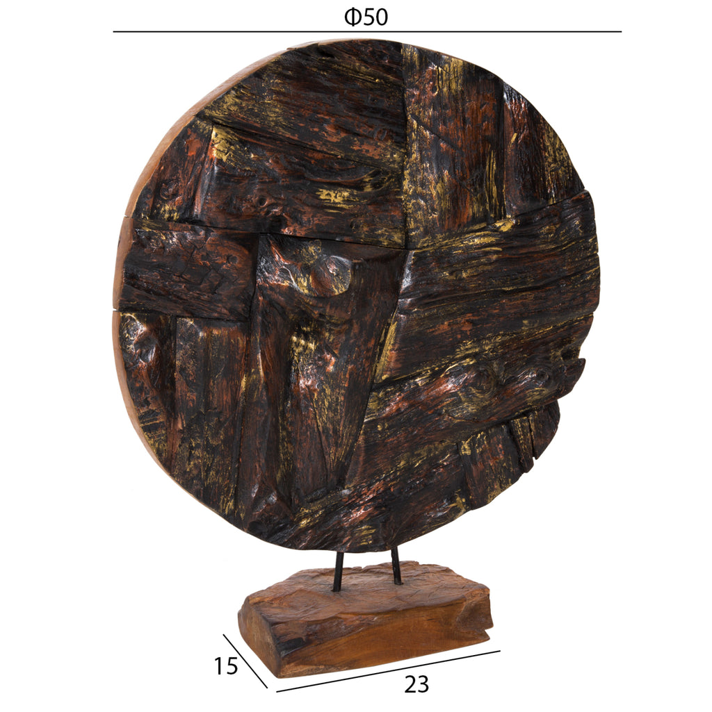 Декорацията за маса Μ7718 ще придаде още един "облик" на вашето пространство. Дизайнът му е уникален и интересен, като същевременно може да се съчетае с много декоративни шарки. Дървесината, която съставлява кръга, е в естествения си цвят, а размерите на цялата конструкция правят това парче внушително, където и да се постави. РАЗМЕРИ: 50х15х64 см. **Размерите може да варират поради ръчно изработена конструкция. Всички пукнатини в дървото се дължат на естественото състояние на дървото и не са дефект на продукта. МАТЕРИАЛИ НА ИЗРАБОТКА: Декорацията е от масивно тиково дърво. Когато говорим за масивно дърво, имаме предвид дървета, направени изцяло от ствола на дърво. Масивната дървесина е най-скъпият избор по отношение на дървесината, но се откроява със своята вечна естетика. Тикът е най-популярният вид твърда дървесина. Той е жълт до тъмно кафяв на цвят, изключително тежък, с висока якост, устойчив на атмосферни влияния, устойчив на стружки и не се разлага. Често водите на дървото му са силни и прави. Използва се за много интериорни конструкции. ПОДДРЪЖКА: Фактът, че ТИК е част от твърдата дървесина, го прави много лесен за поддръжка. Всичко, от което се нуждае, е почистване от прах и при необходимост почистване с влажна кърпа. ПРЕДИМСТВА: Тази декорация може да се побере навсякъде, където пожелаете. Или у дома, или в бизнес помещения.