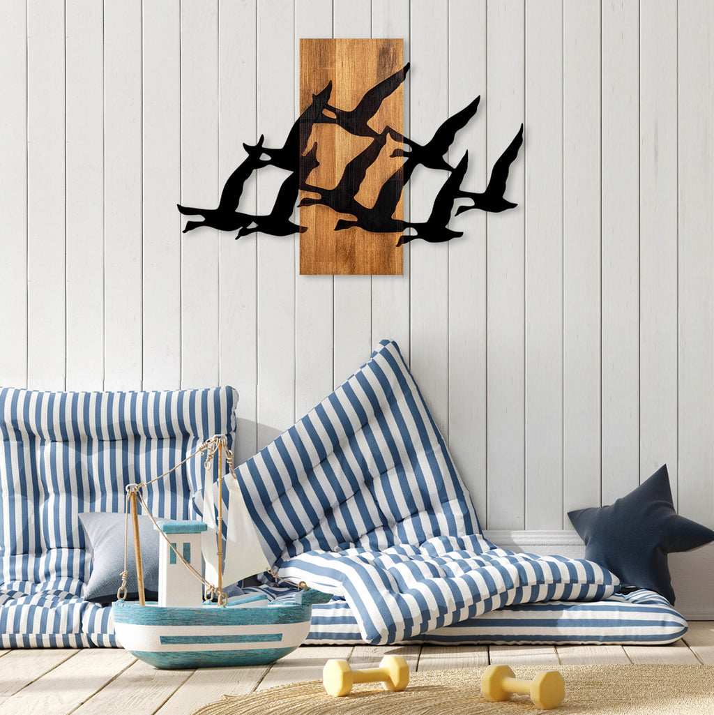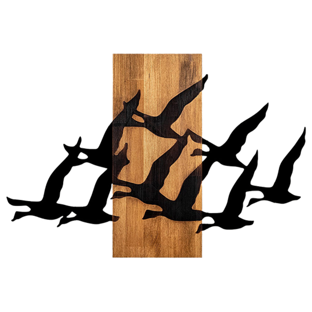 Искате ли да привлечете вниманието с нещо красиво във вашето пространство? Не се колебайте да украсите стената си със стенно изкуство. КГ4759 изобразява множество прелетни птици и е изработена от метални листове в черно върху дървена правоъгълна основа в естествен цвят! Но можете ли да си представите важността на подобни декорации?